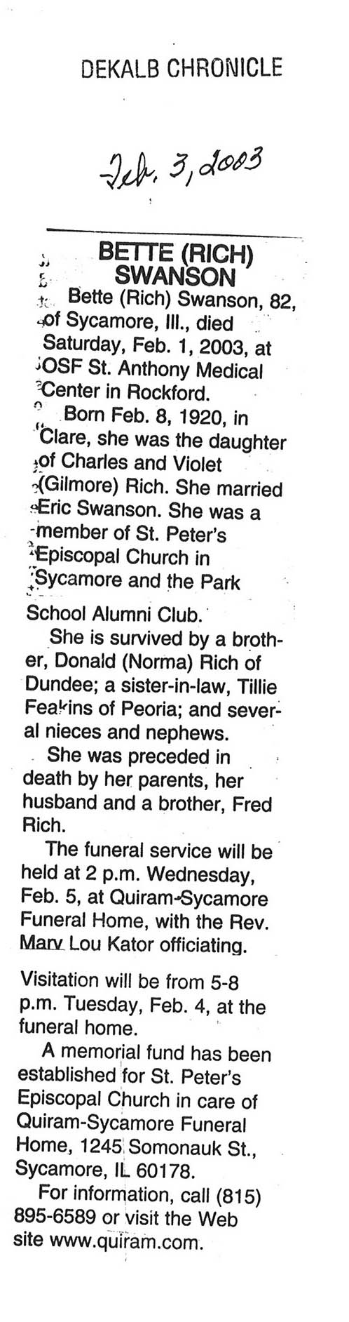 Deceased Dec. 22, 2003