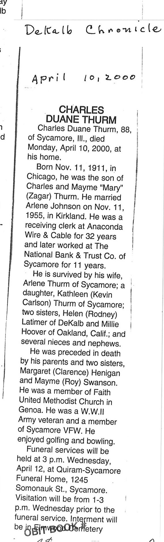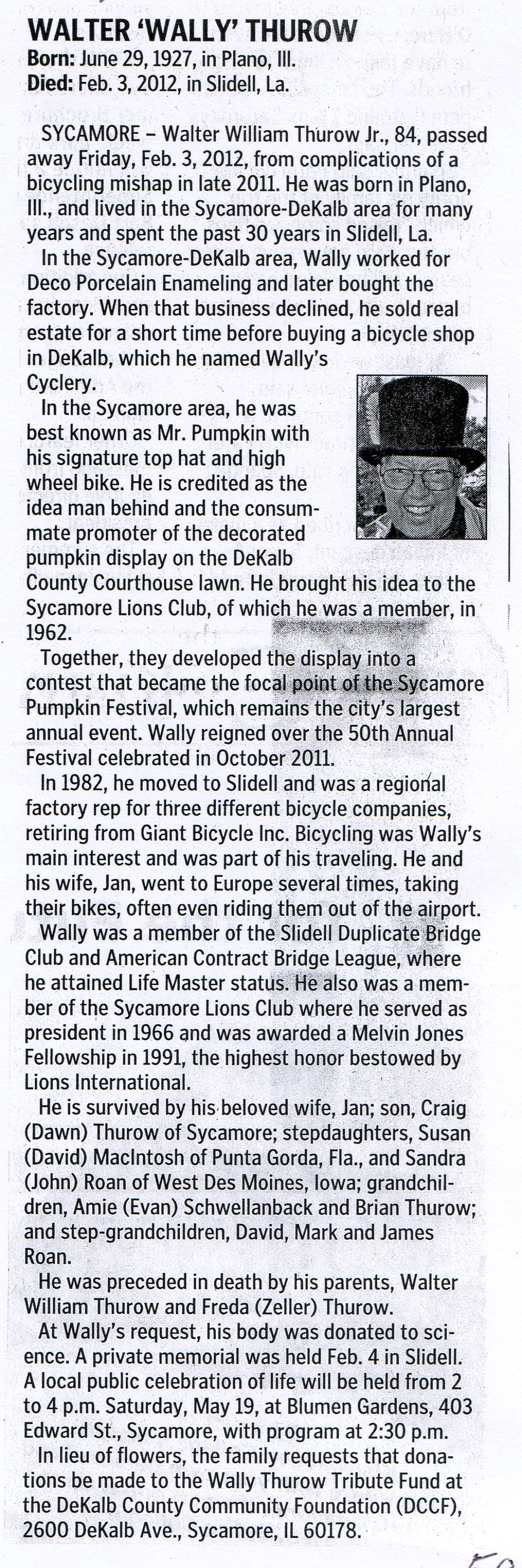 Twin son of William H. Thurow, Jr.