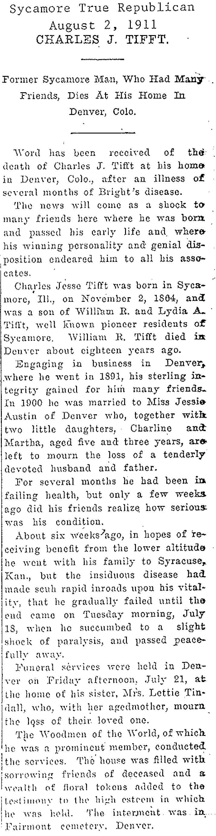 Buried in Fairmont Cemetery - Denver, CO