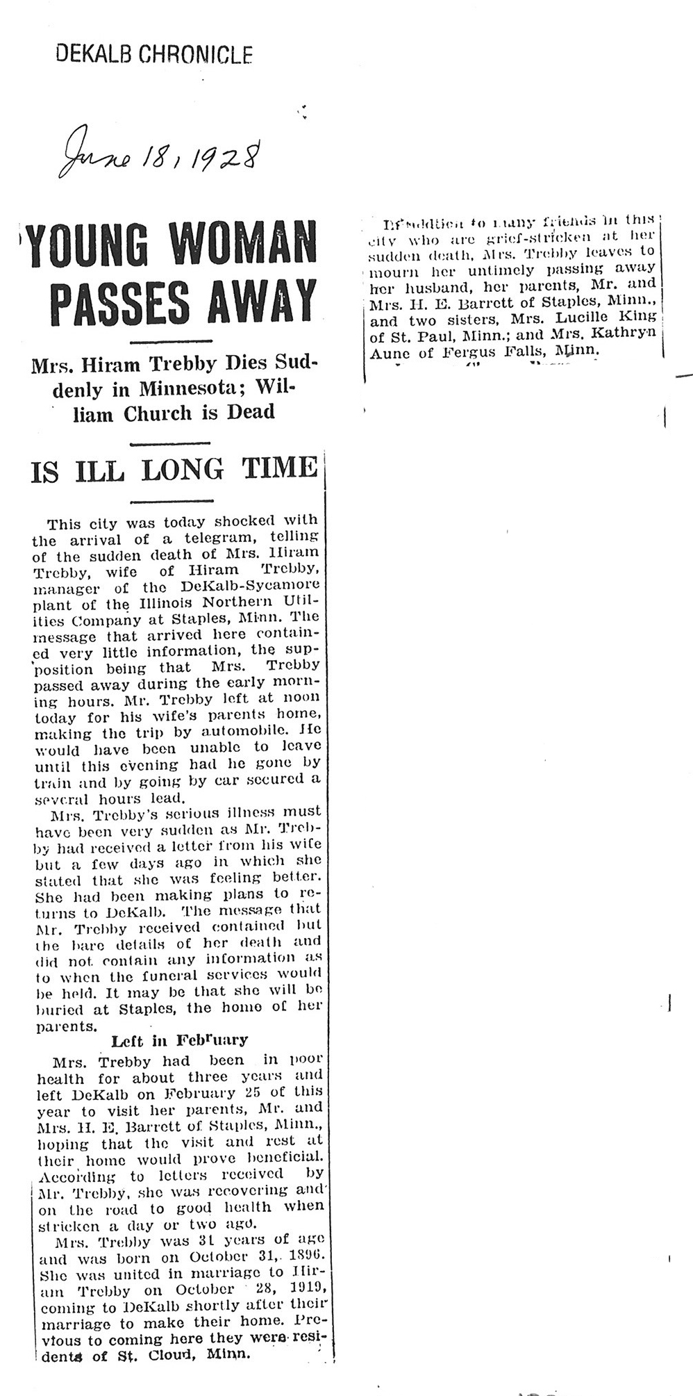 Possibly buried in Staples, MN (home of her parents)