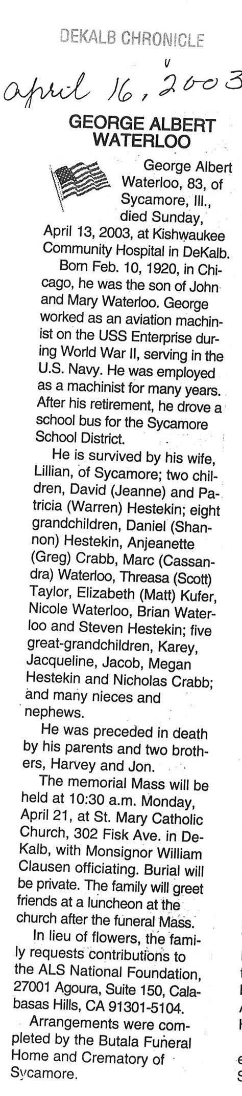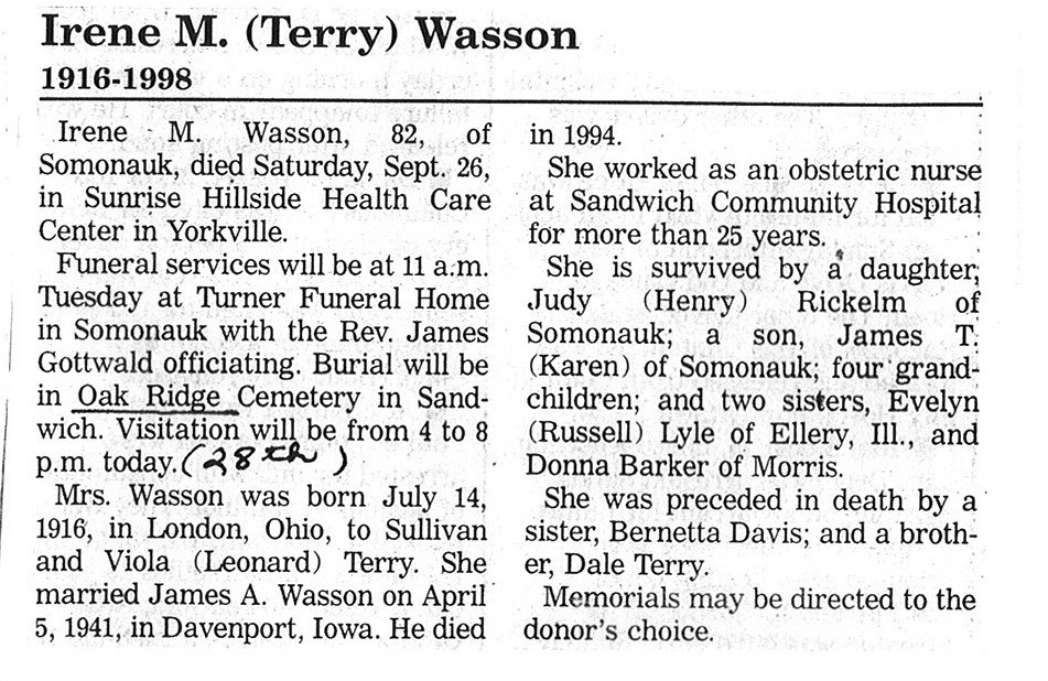 Buried in South Paw Paw Cemetery, IL