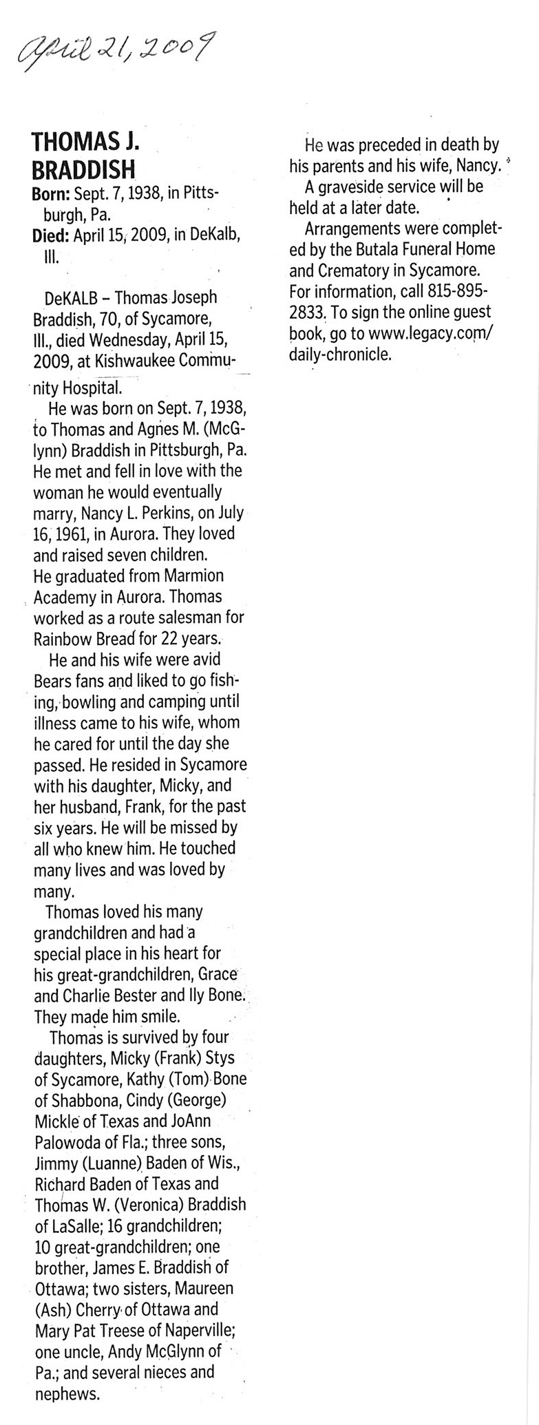 There is no age at the time he died and there is no year for the publication this was written in.