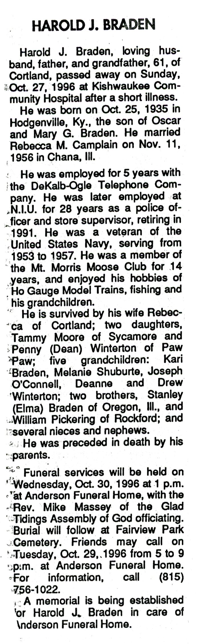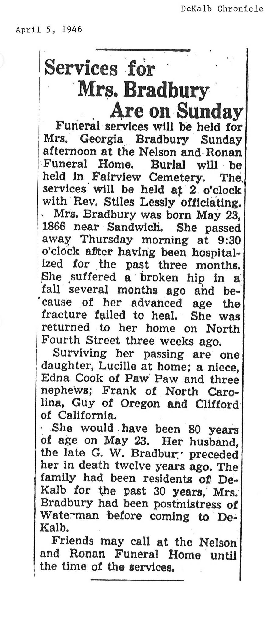 Buried in Riverview Cemetery - Oregon, IL