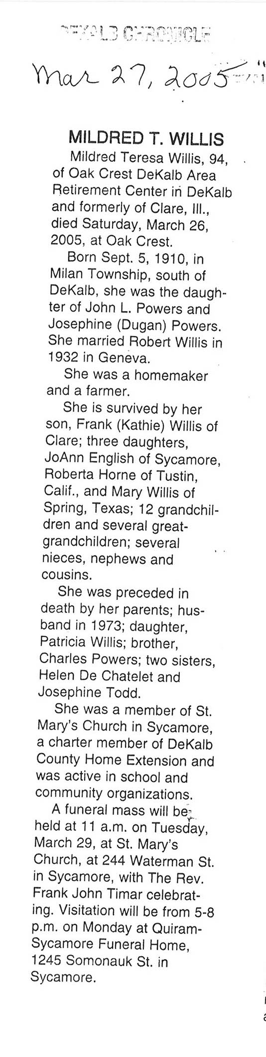 Death date unsure 2 dates in obit