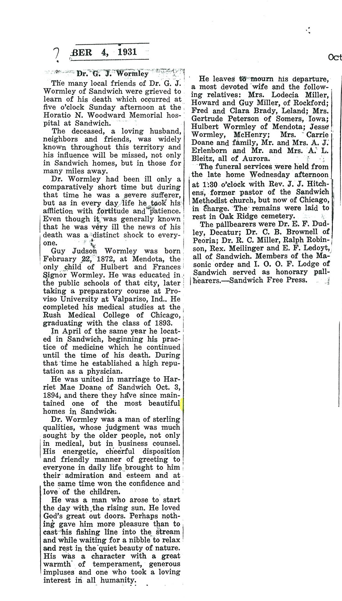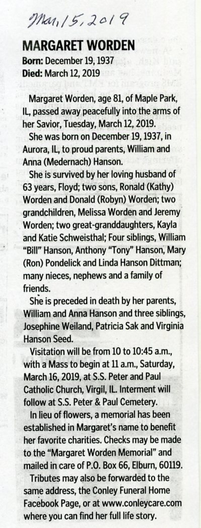Oct 24 obituary from Sycamore True Republican
