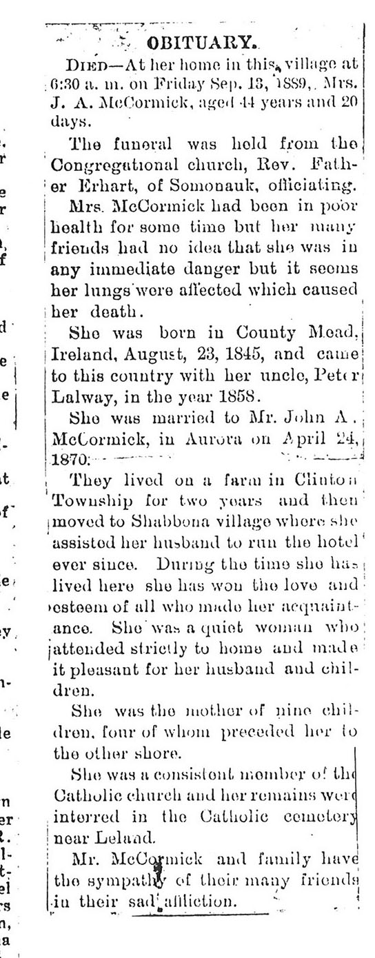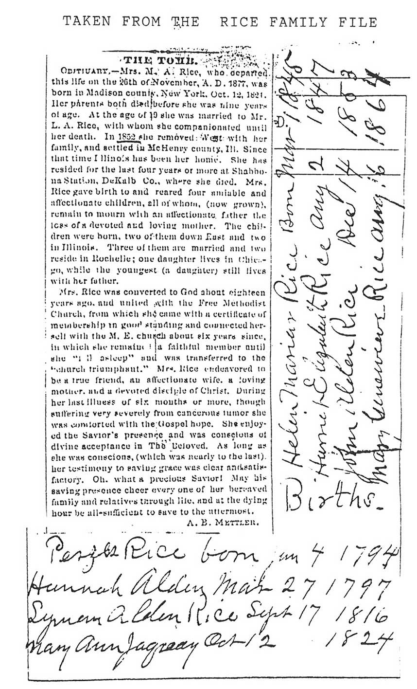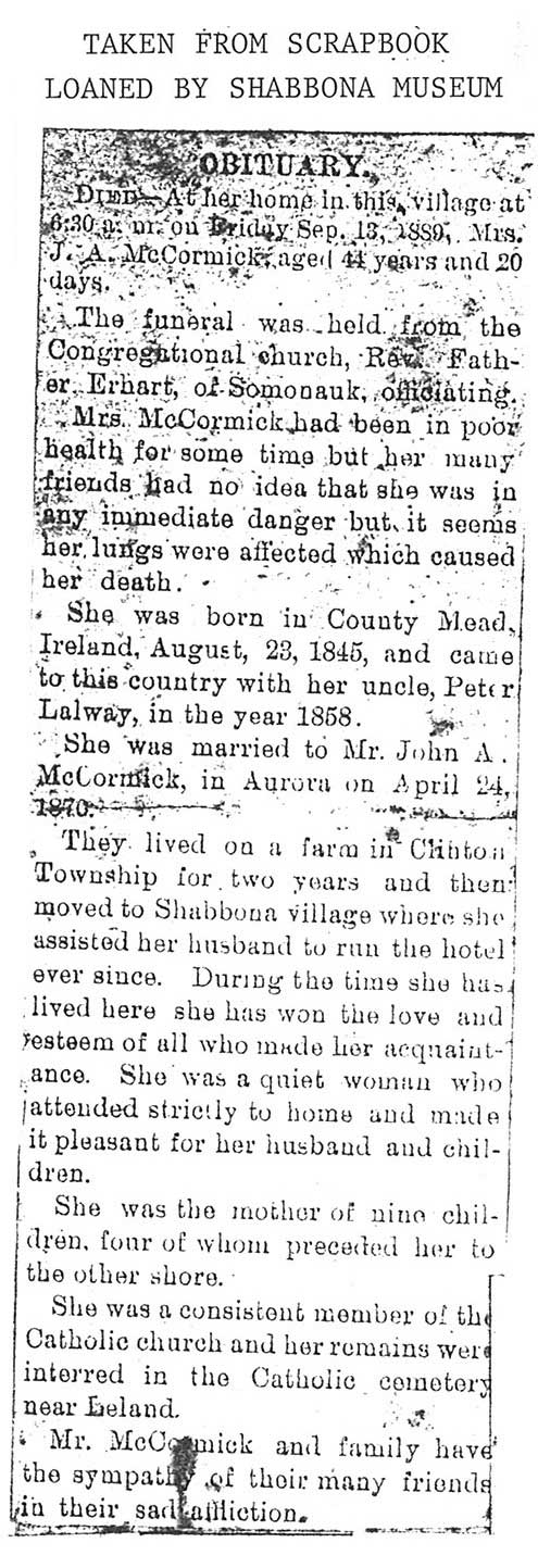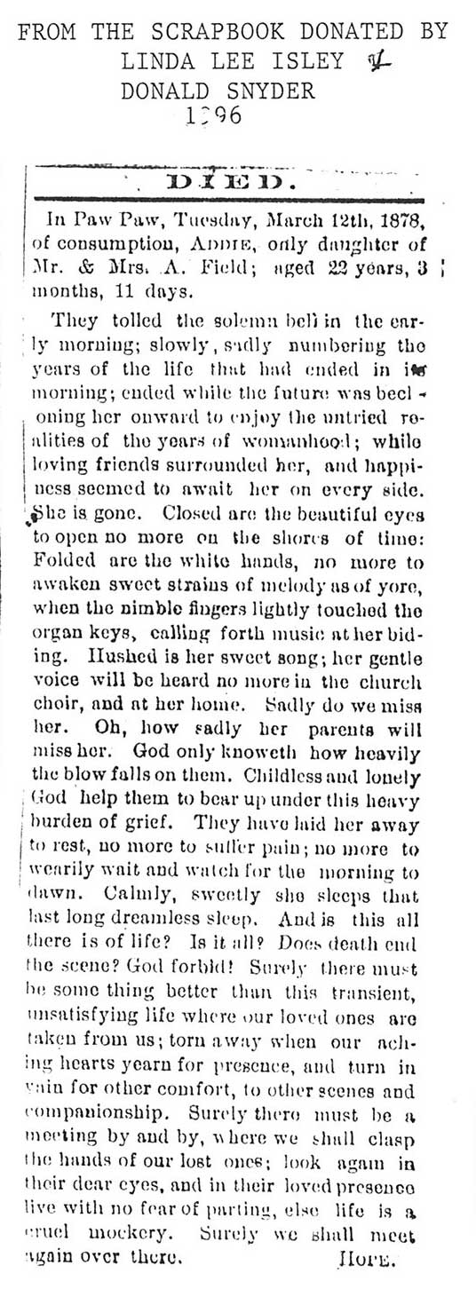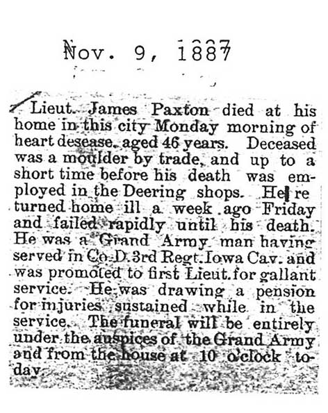 Buried in East Cemetery, Paw Paw, IL