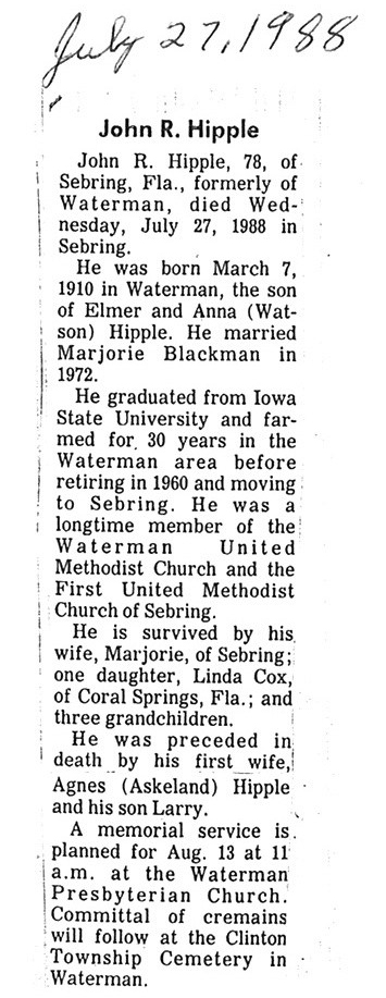 Deceased July 27, 1988
