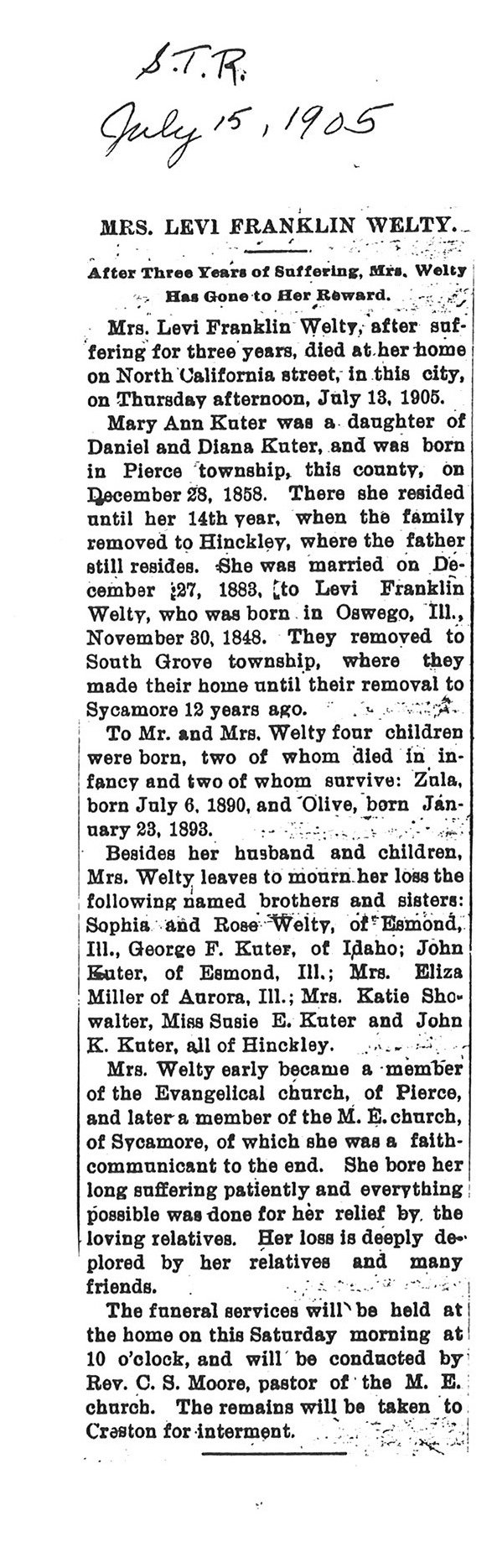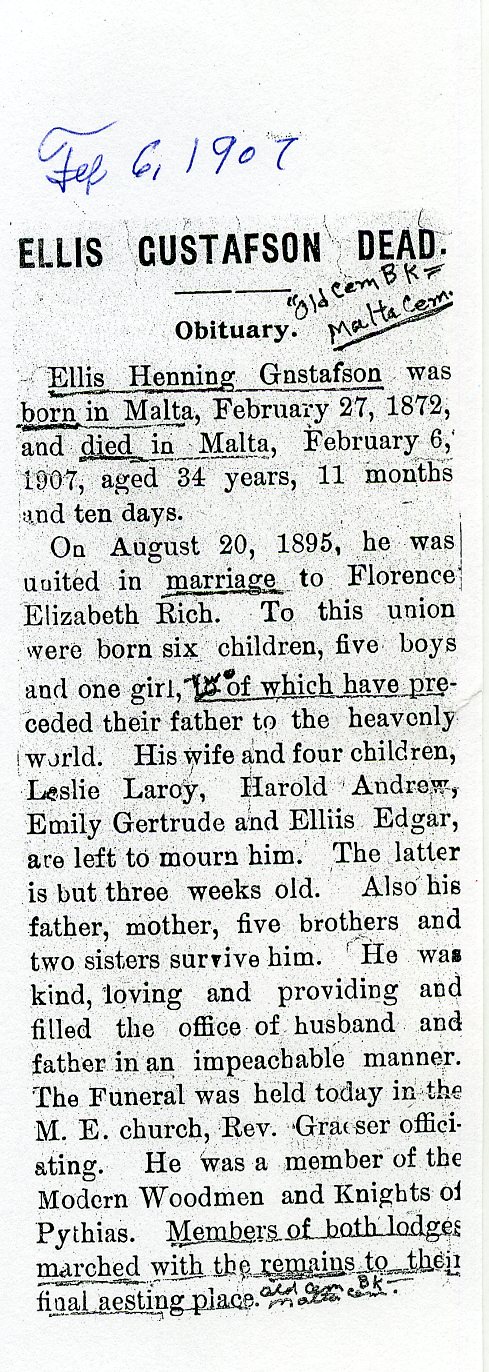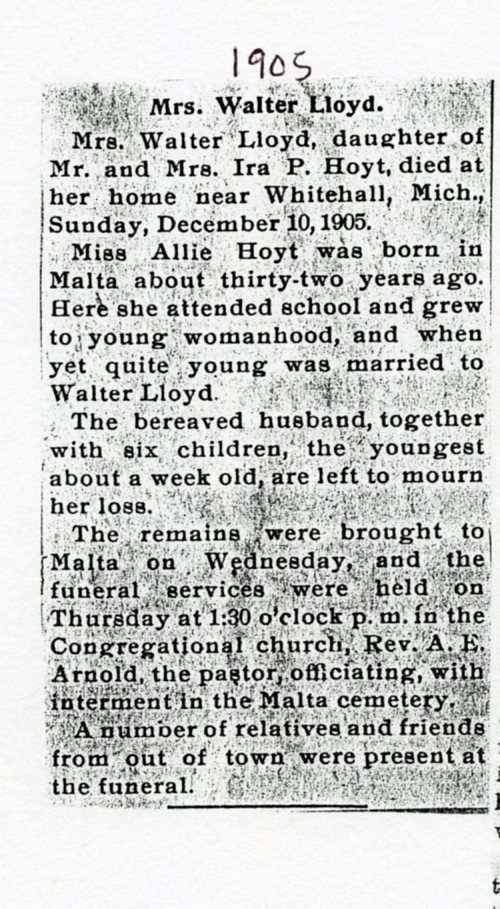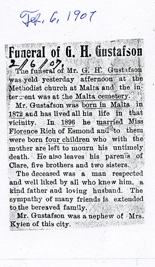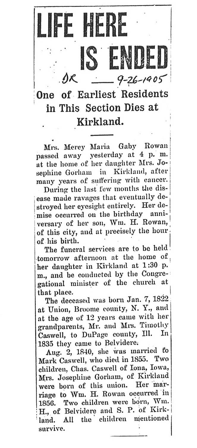 Buried in cemetery south of Lee, IL