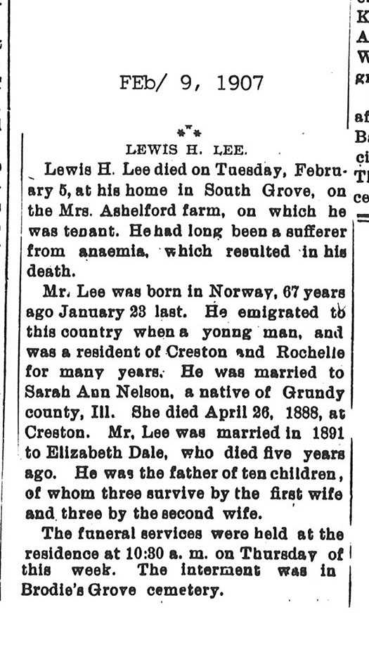 Buried in Lee, IL