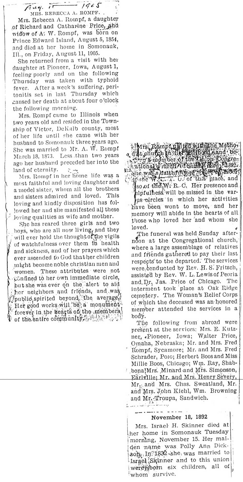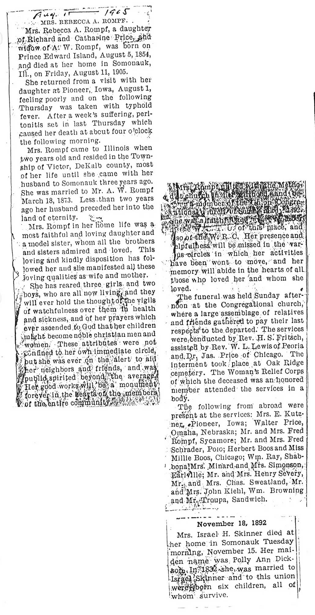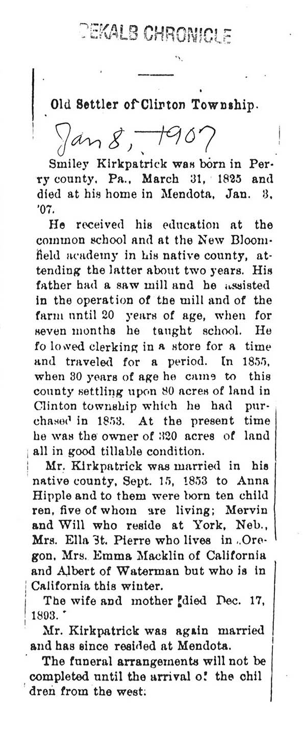 Buried in Smith Cemetery - Shabbona Grove, IL