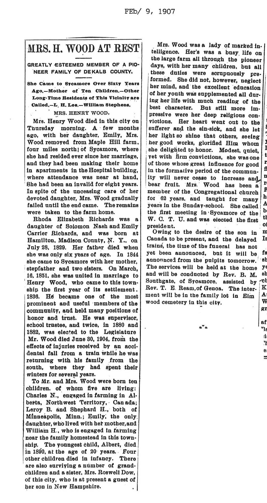 Buried in Wood Lawn Cemetery