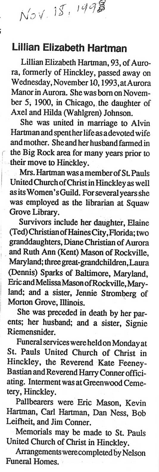 DOB 15 November 1910