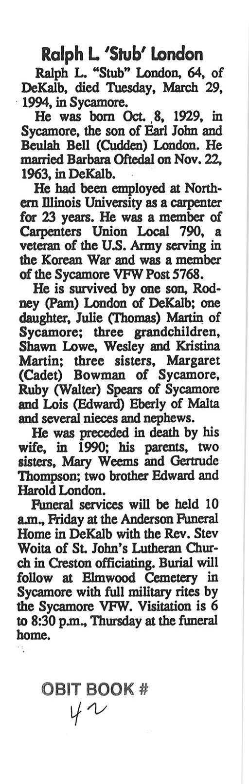 DOB 13 January 1914
