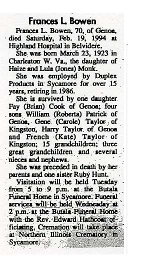 Maiden name - Fraley