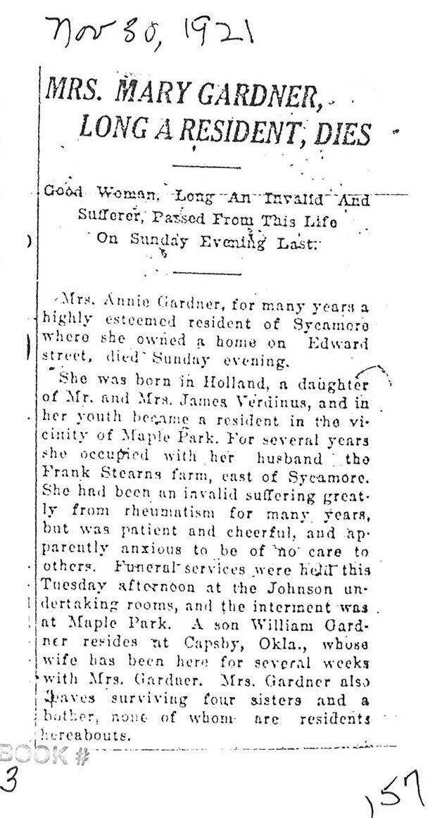 Buried in Big Woods Cemetery - Aurora, IL