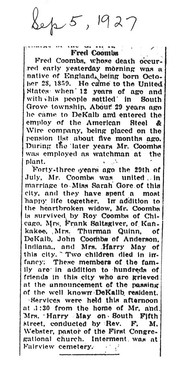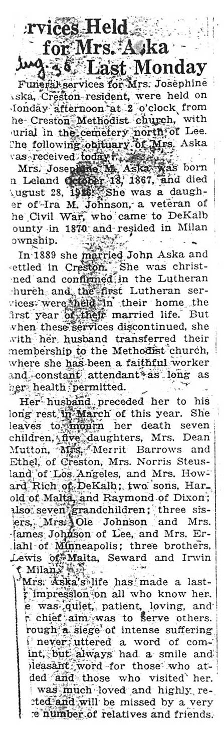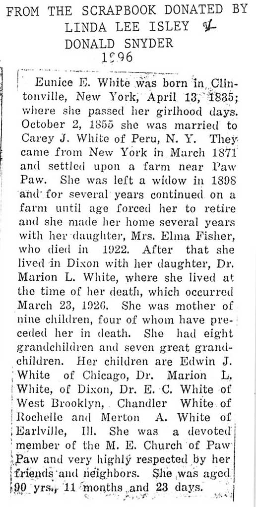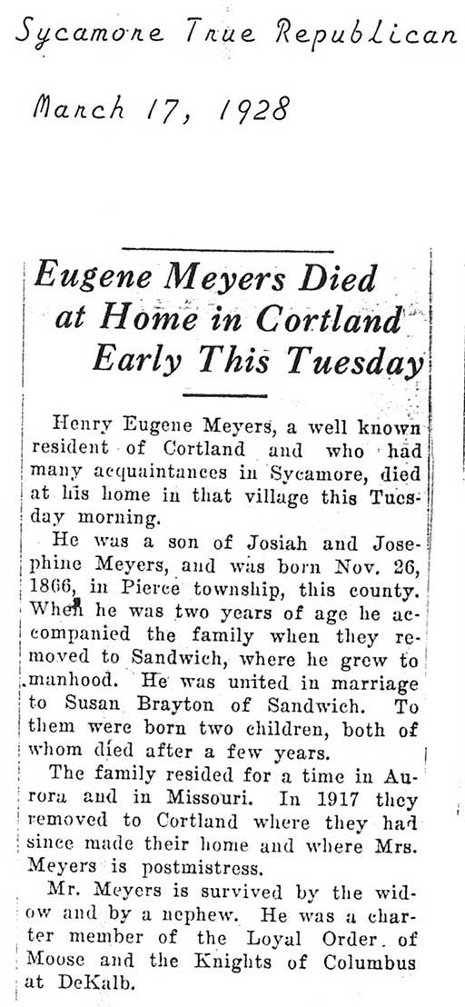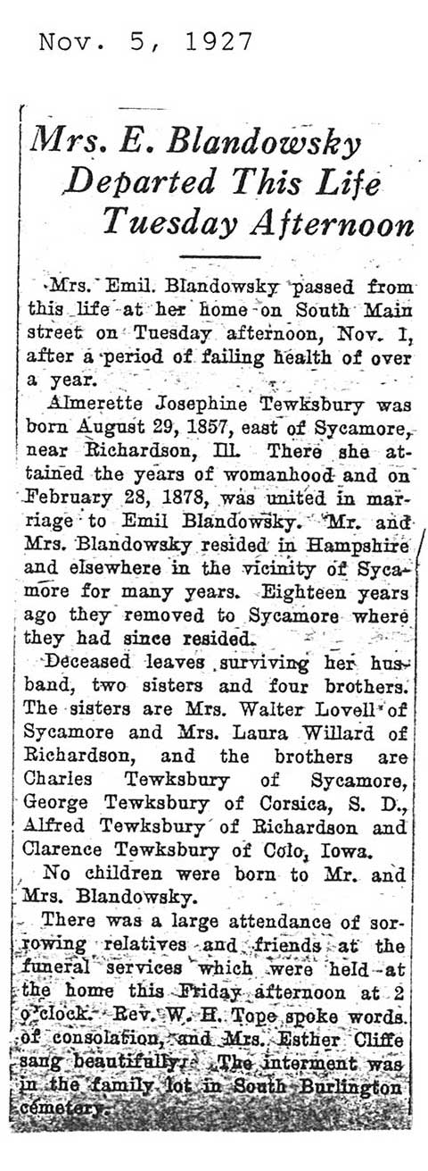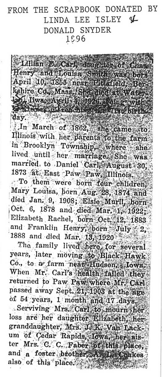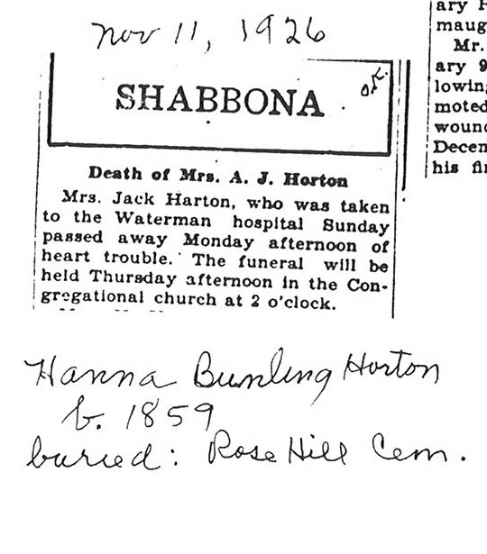 Buried in Little Indian Creek Cemetery - Leland, IL