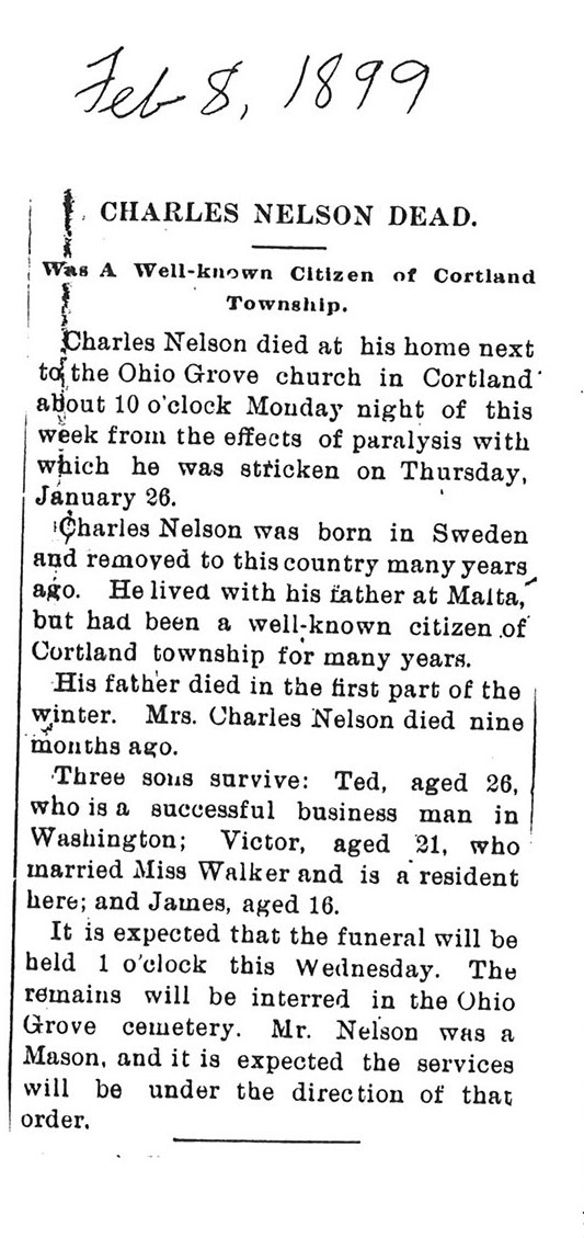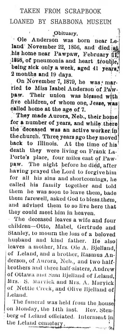 Buried in Leland Cemetery - Leland, IL