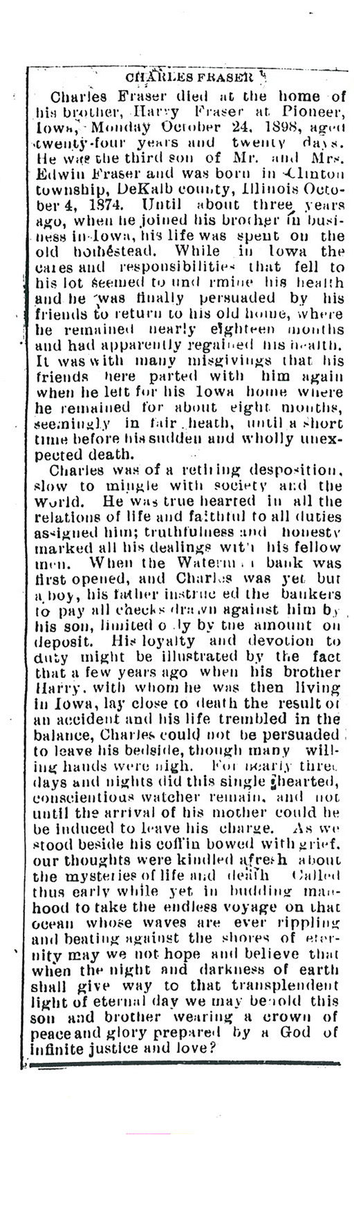 Maiden name - Foster Buried in Wyoming Cemetery, Paw Paw, IL
