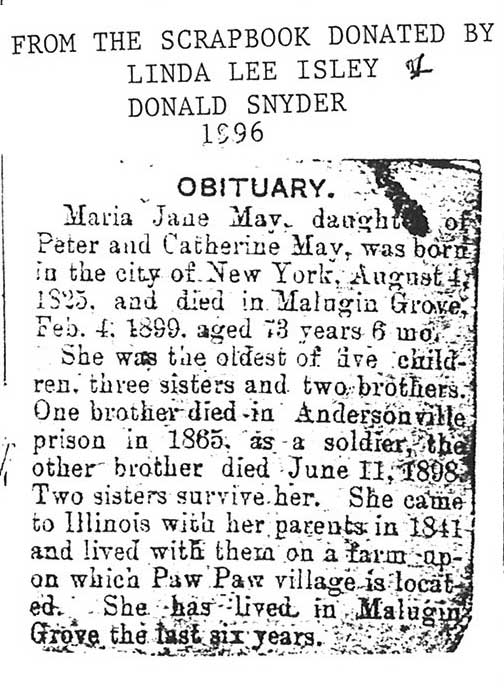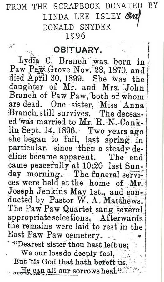 Maiden name - Branch Buried in East Paw Paw Cemetery - Paw Paw, IL