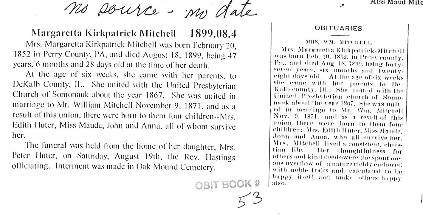 Maiden name - Luce Buried in Cottage Hill - Paw Paw, IL
