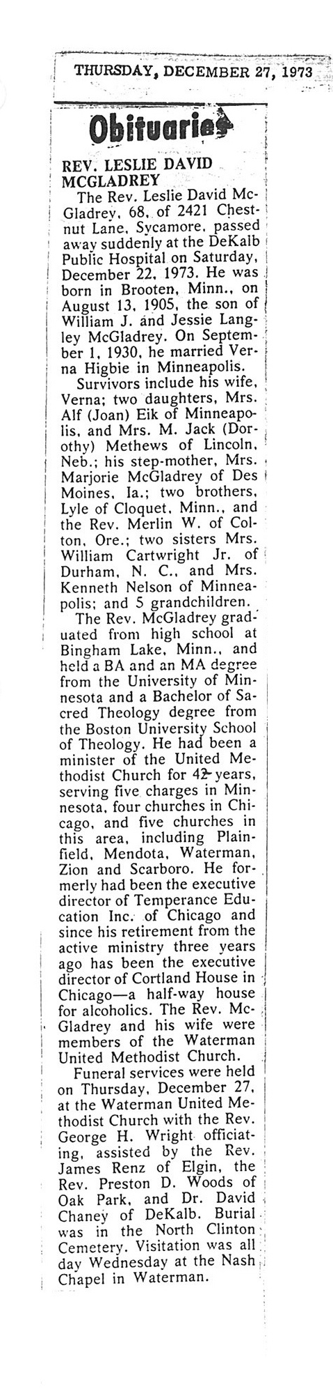Note: last name mispelled in obit