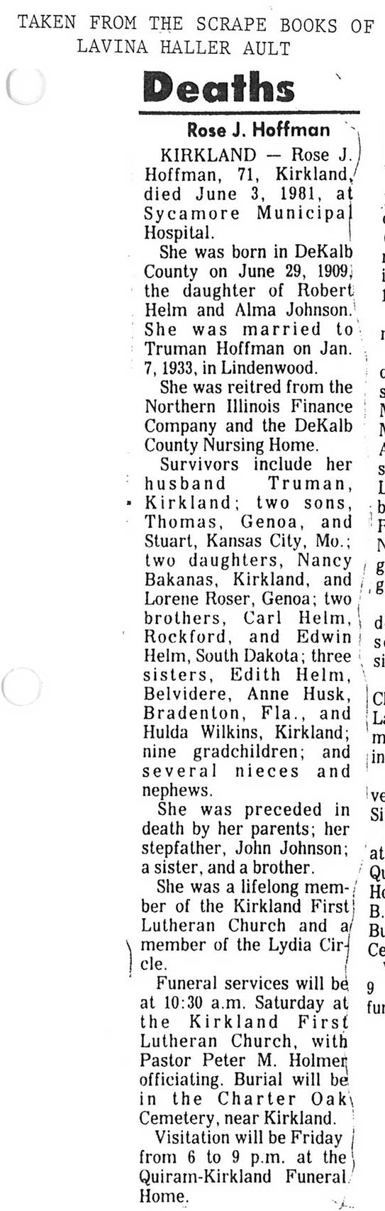 Deceased June 3, 1981