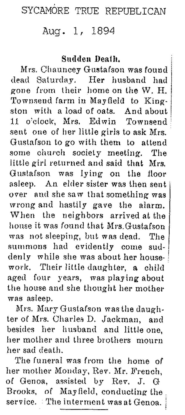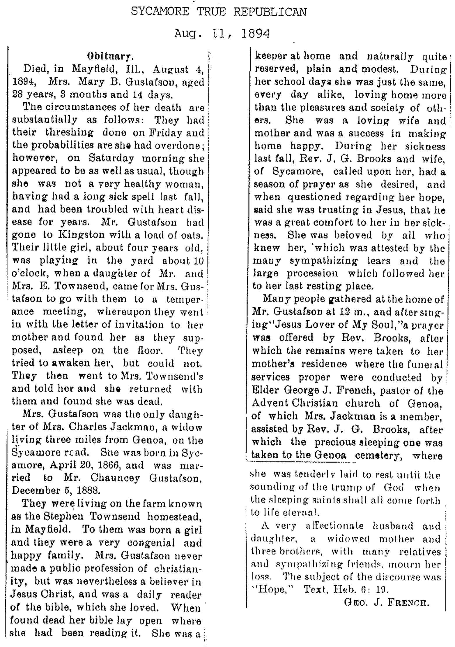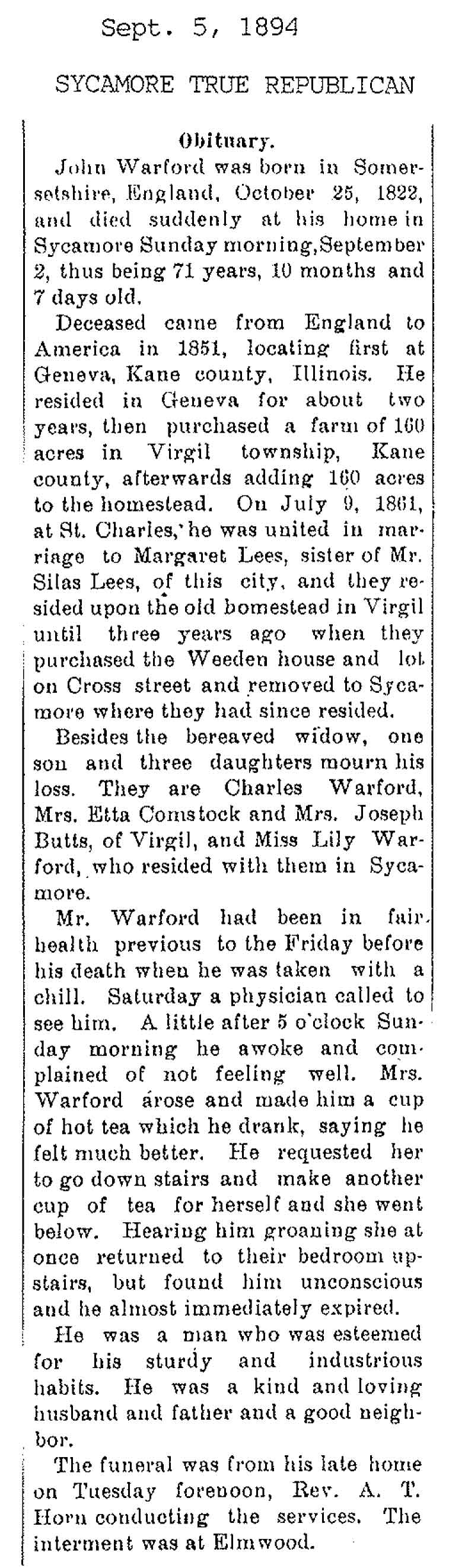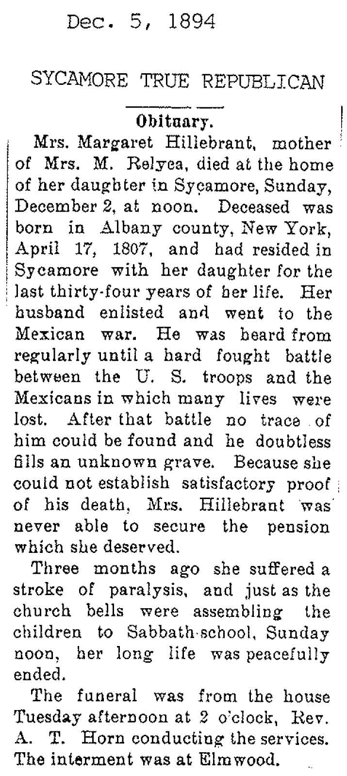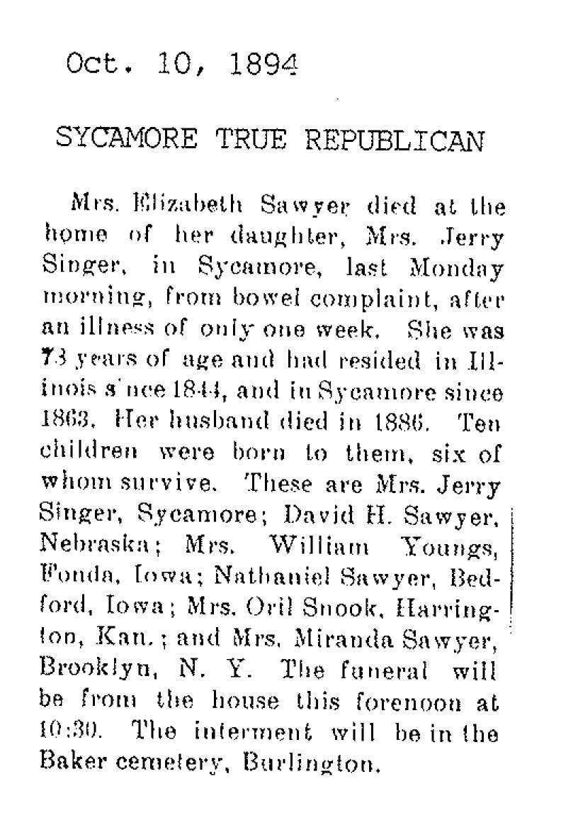 No date of birth Buried in Baker Cemetery - Burlington, IL