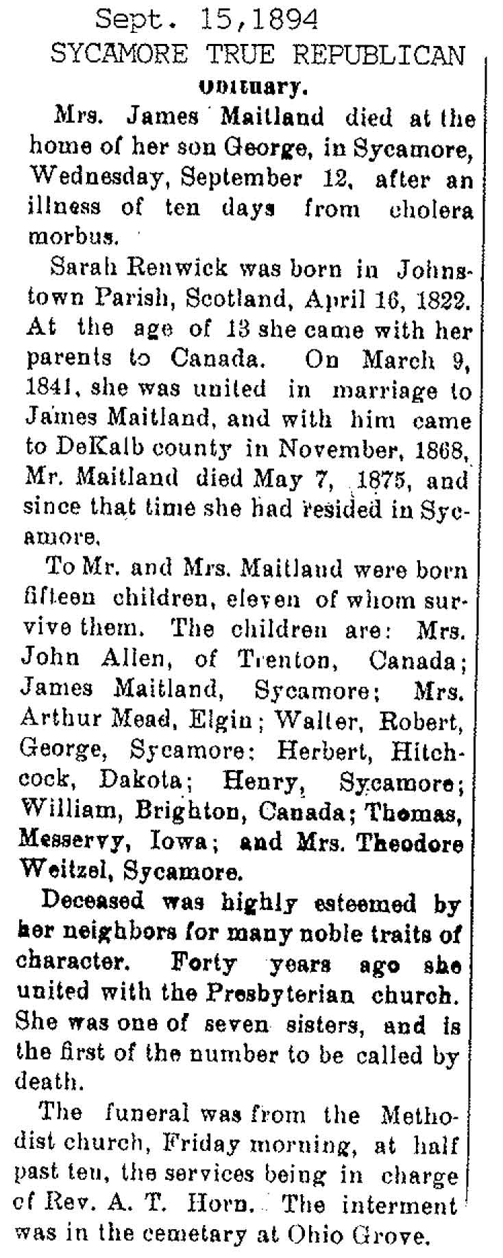 Maiden name - Renwick