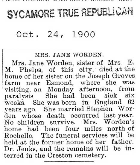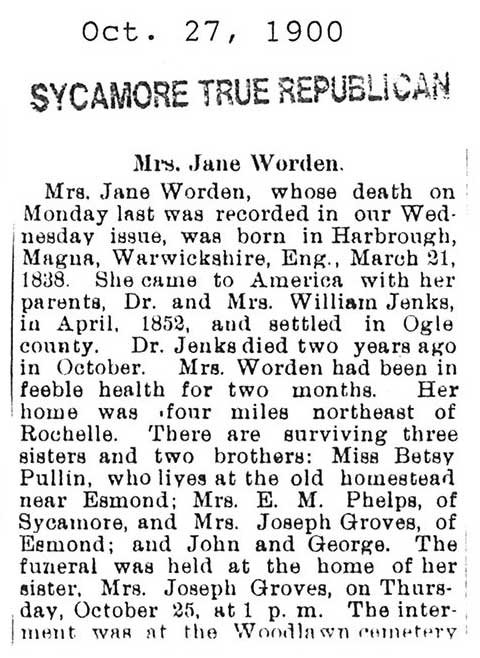 Maiden name - Jenks Buried in Woodlawn Cemetery, Creston, IL
