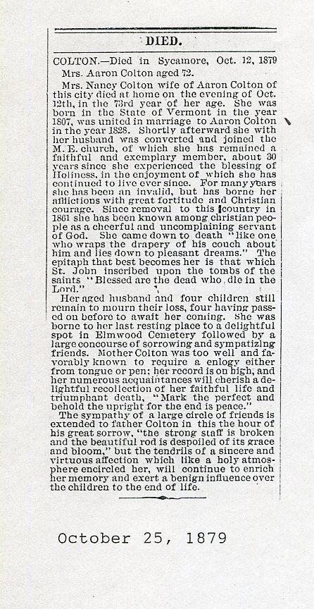 No date of birth Buried in St. James Cemetery, Belvidere, IL