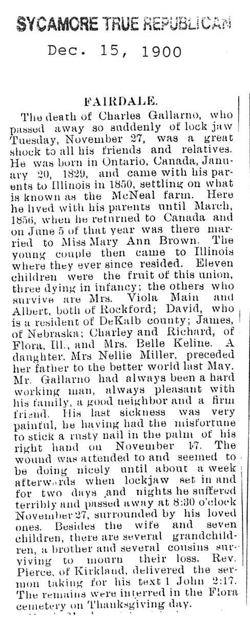 Buried in Flora Cemetery - Flora Twp, Boone County, IL