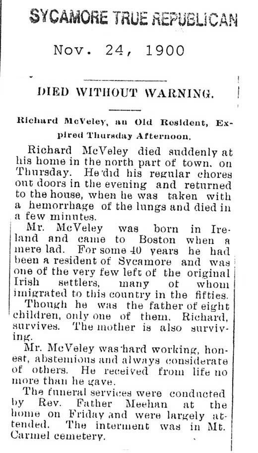 No date of birth Buried in Calvary Cemetery