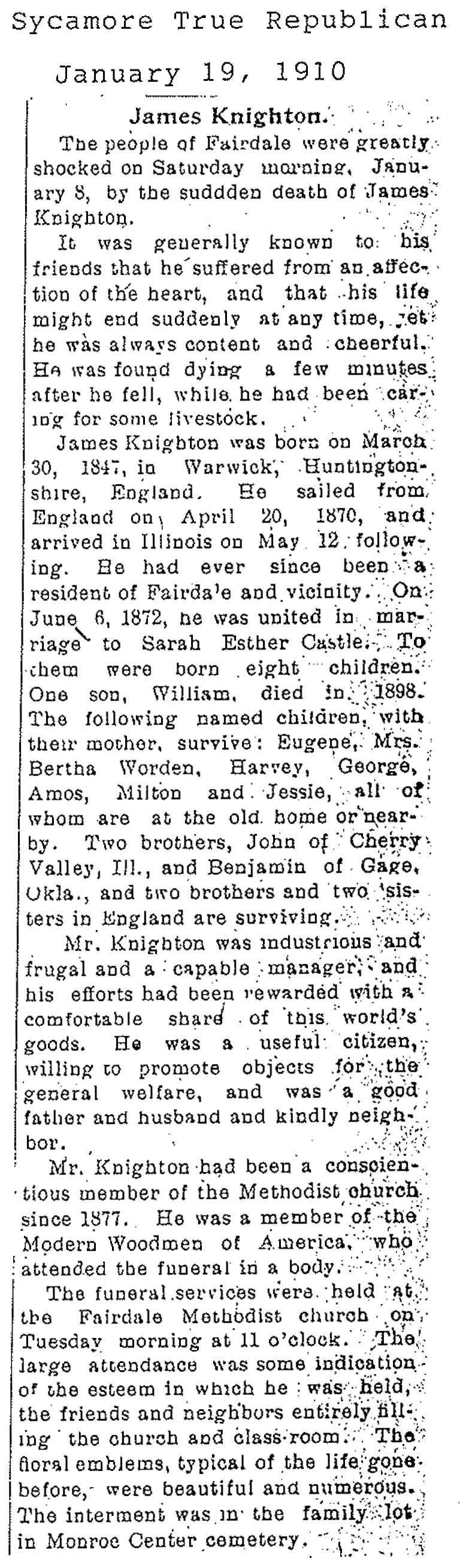 Buried in Monroe Center, IL