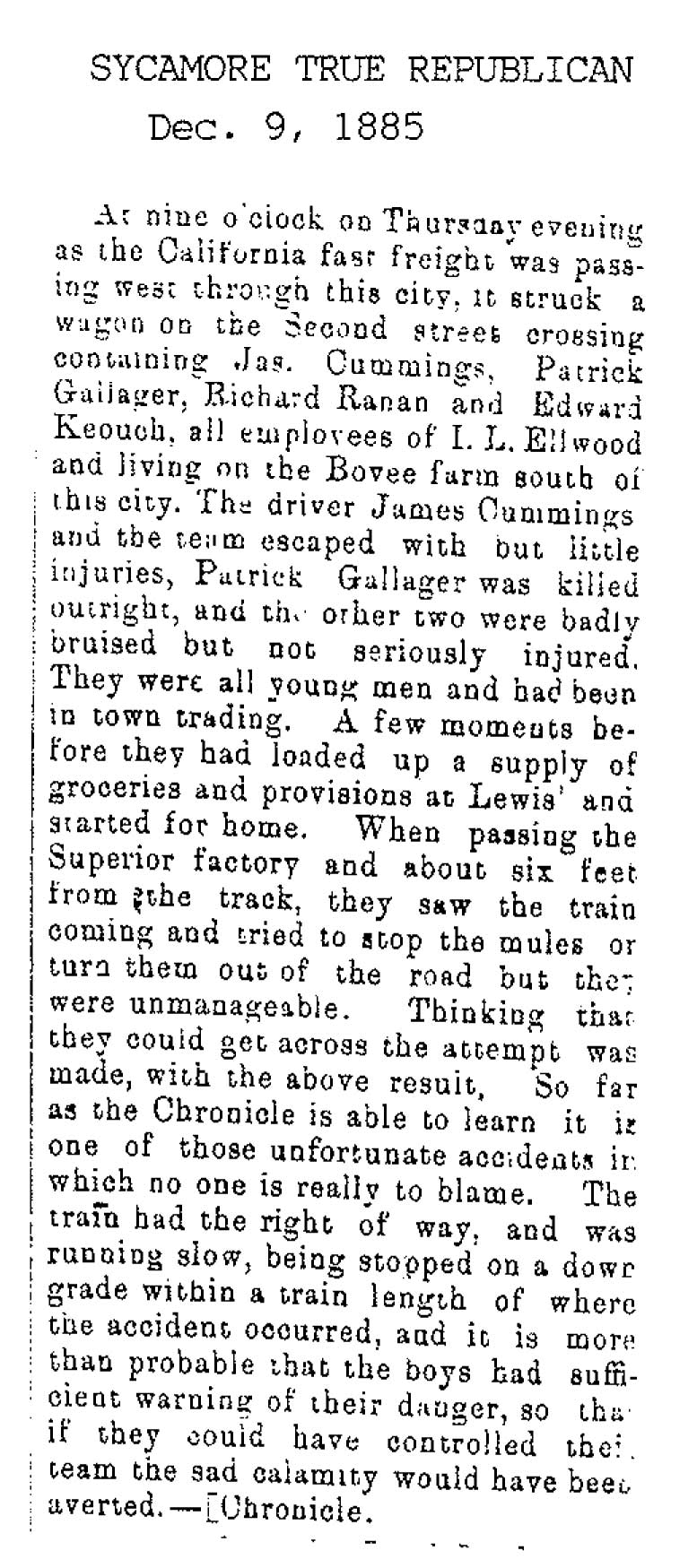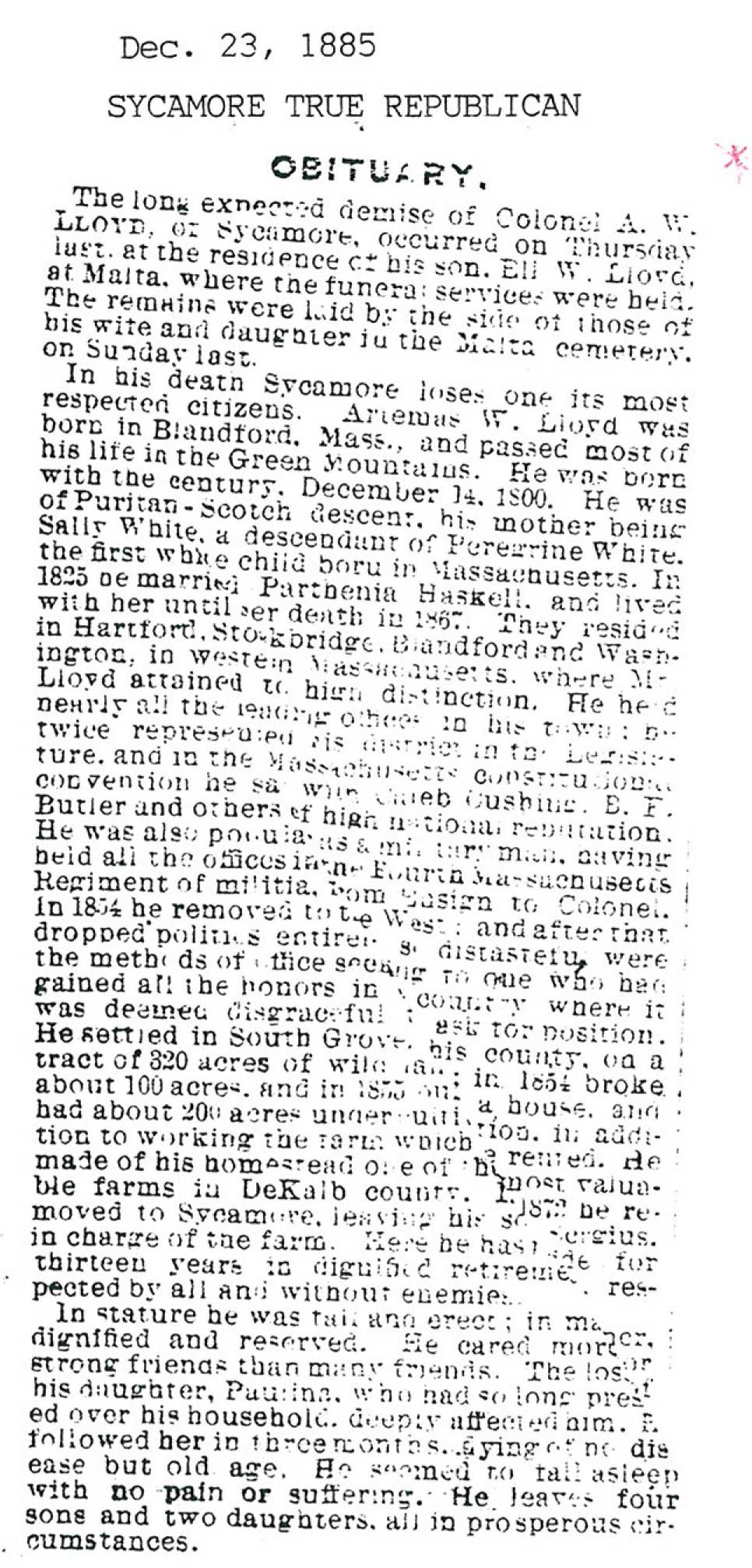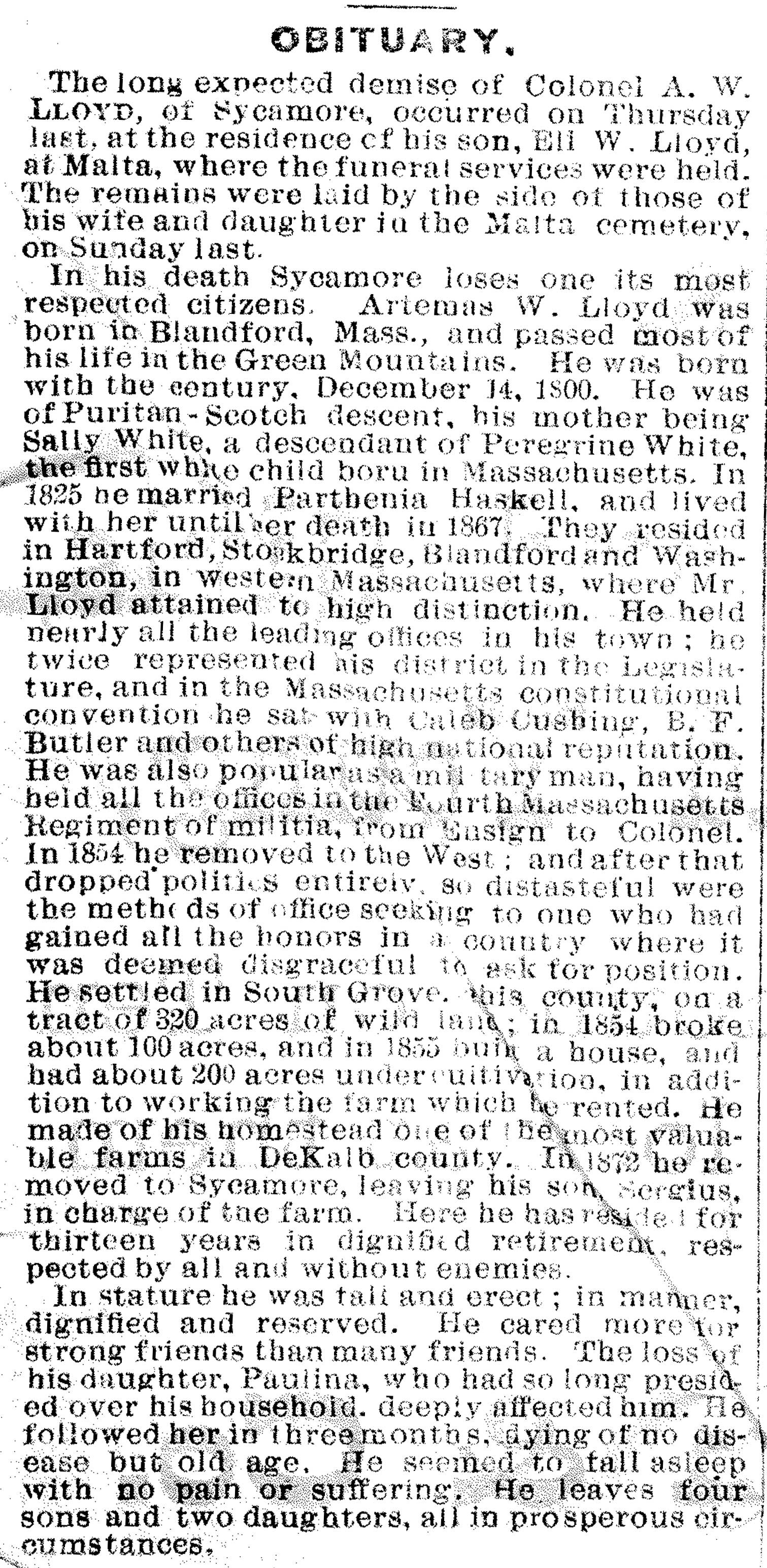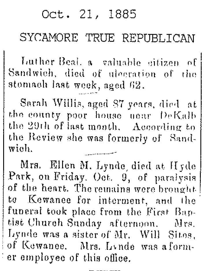 No date of birth Buried in Sycamore, IL