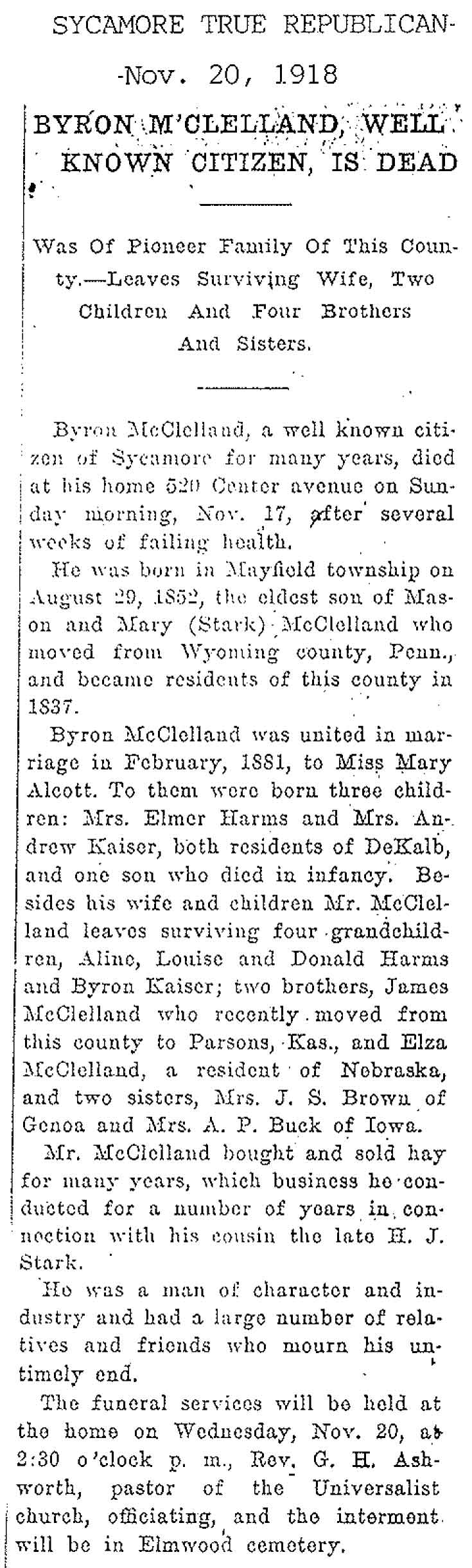 Buried in Gardner Cemetery - Maple Park, IL