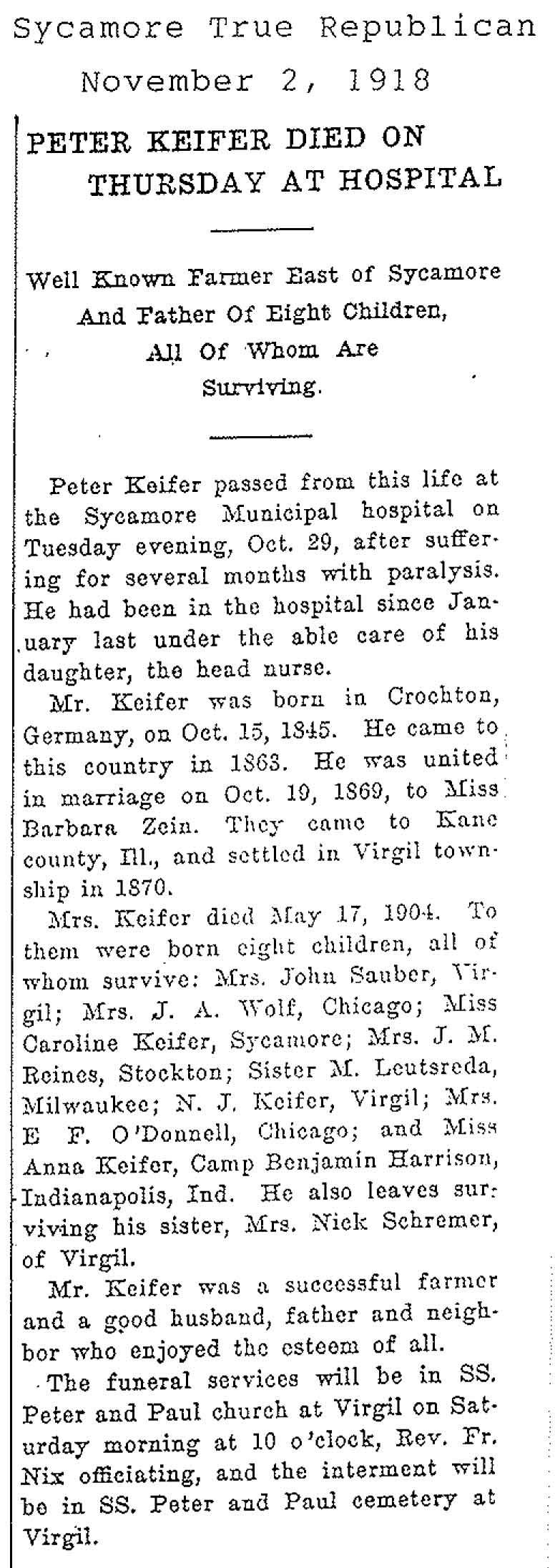 Buried in Paxton, IL