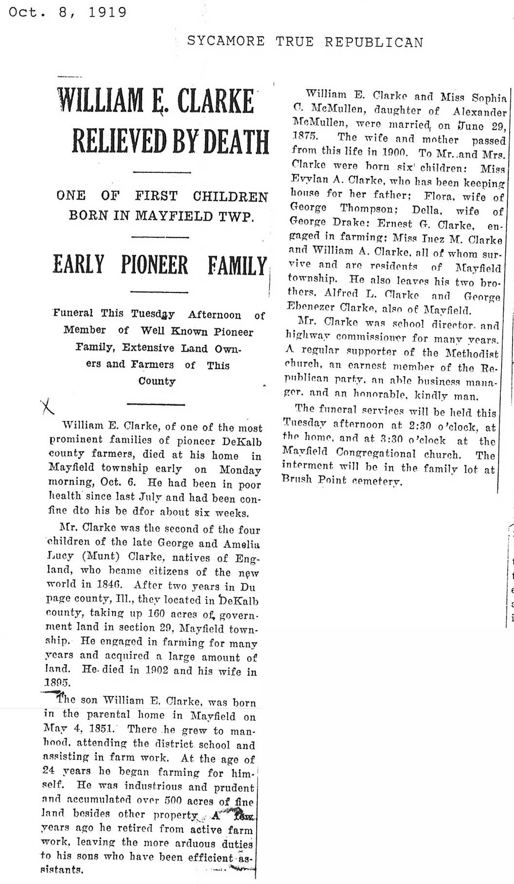 Buried in Flora Cemetery