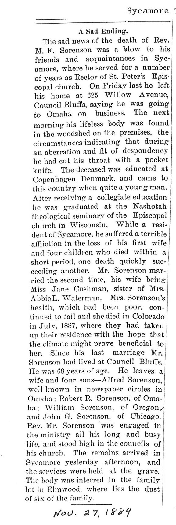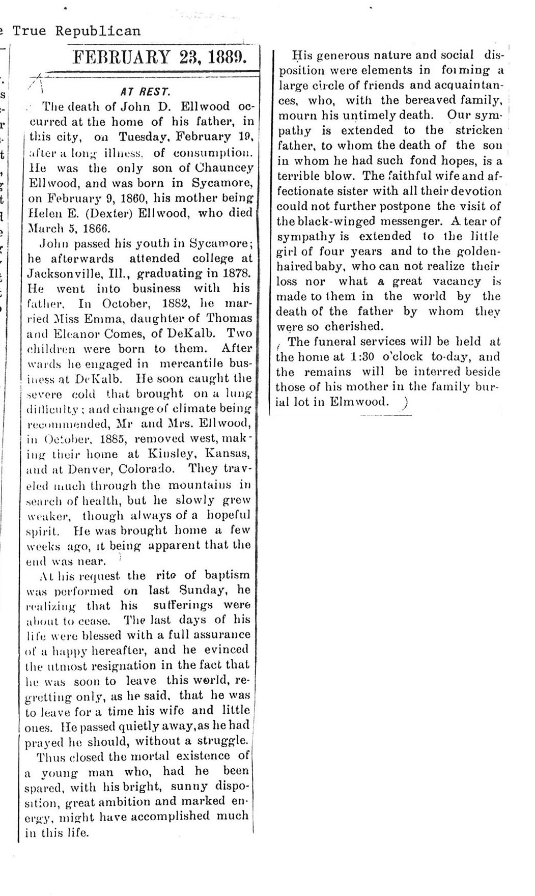 No date of birth Buried in St. Charles, IL