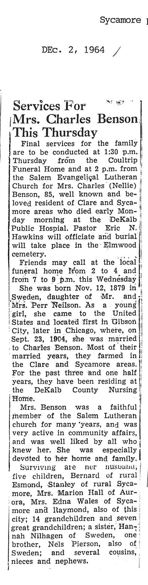 DOB August 5, 1909 in Sweden
