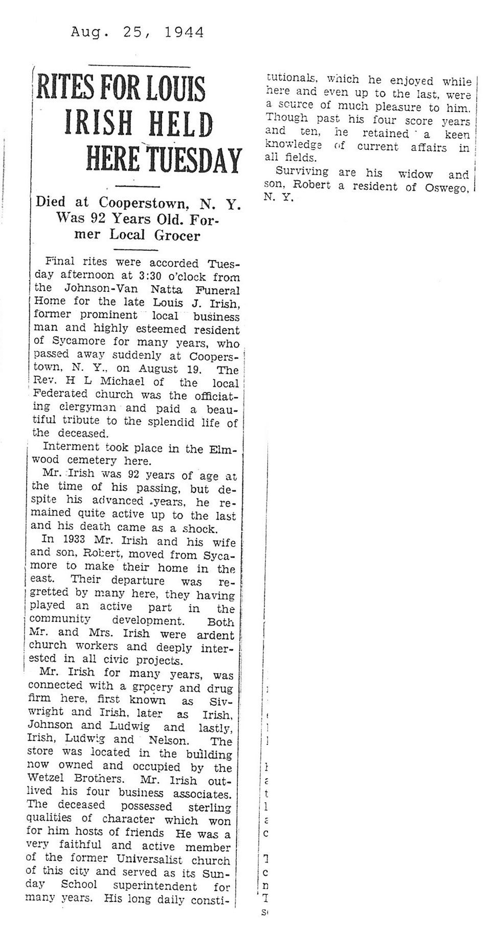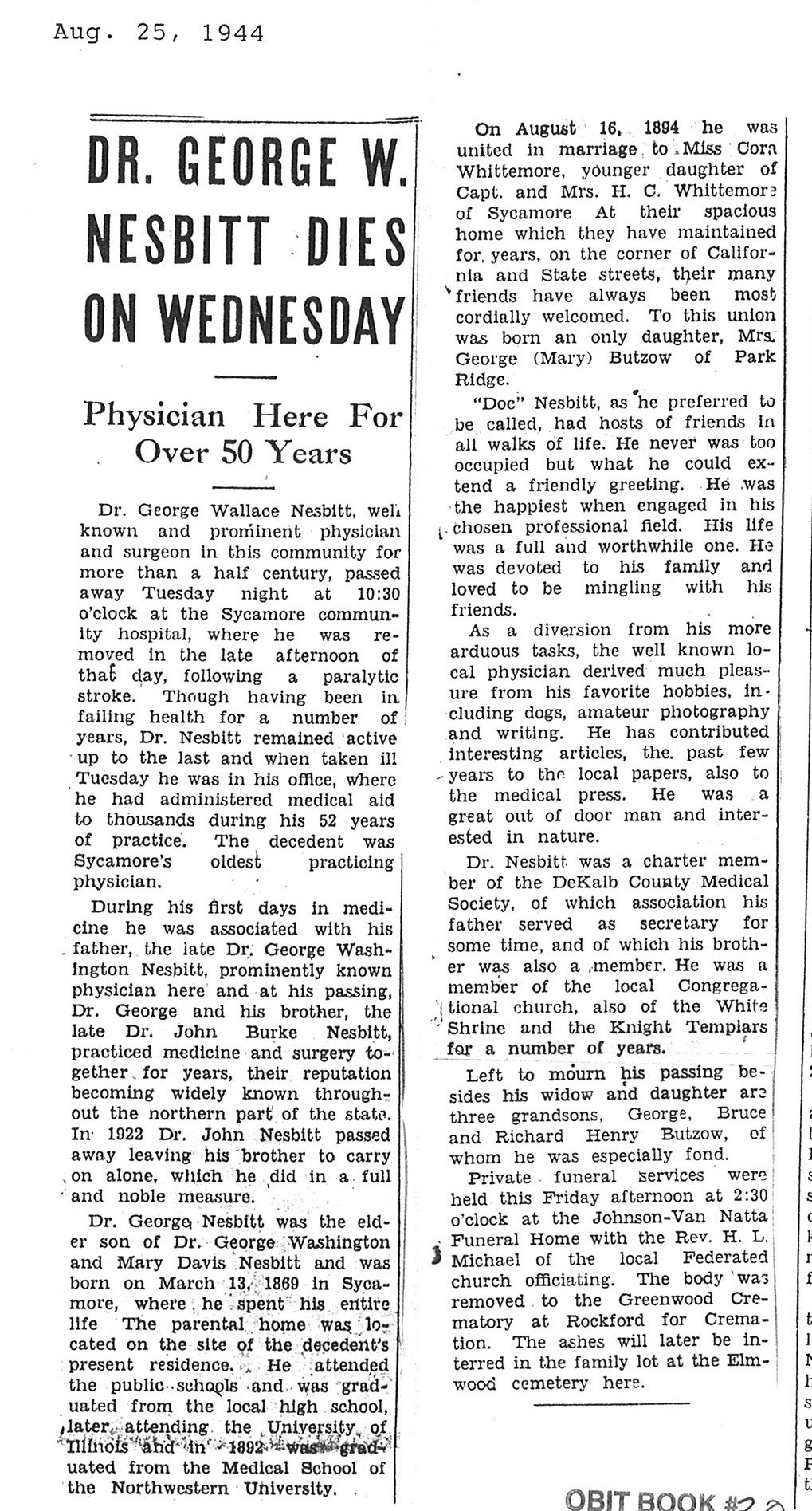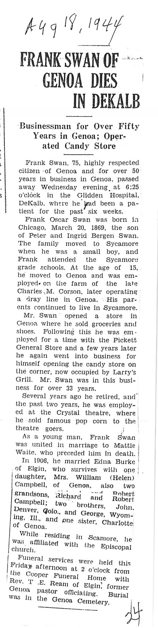 DOB August 20. 1899