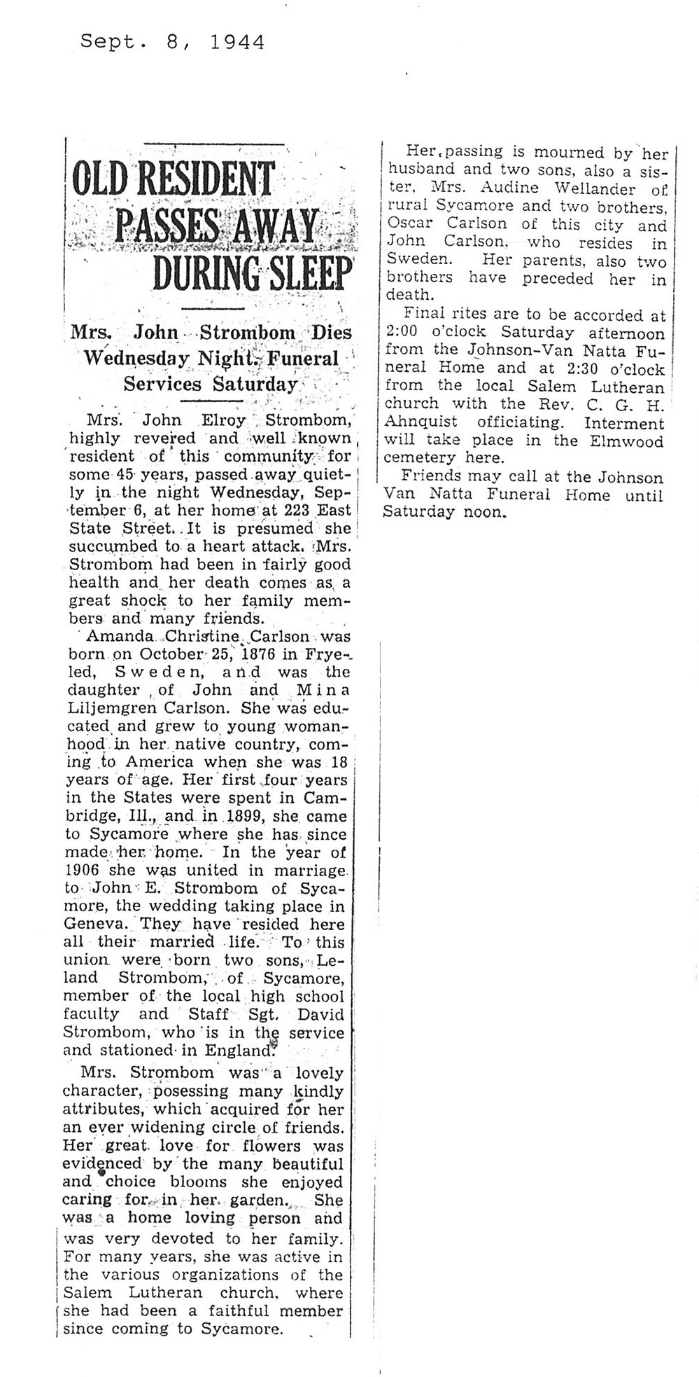DOB November 20, 1854 in Sweden