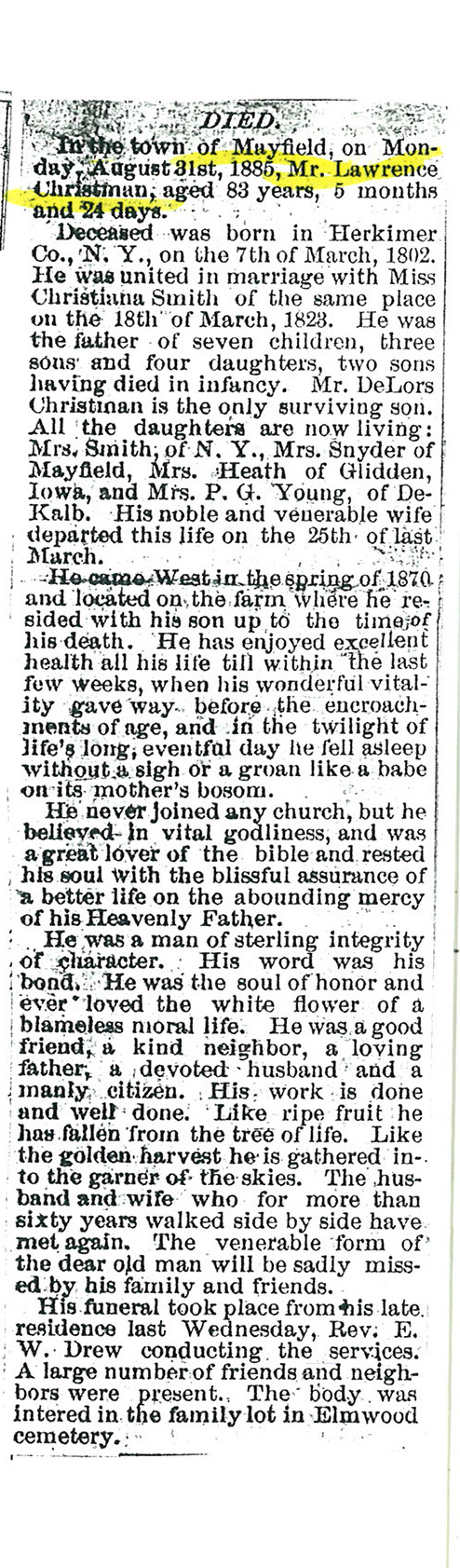 Last name may be spelled Chrisman-wife is Christine, her obit spelled Chrisman