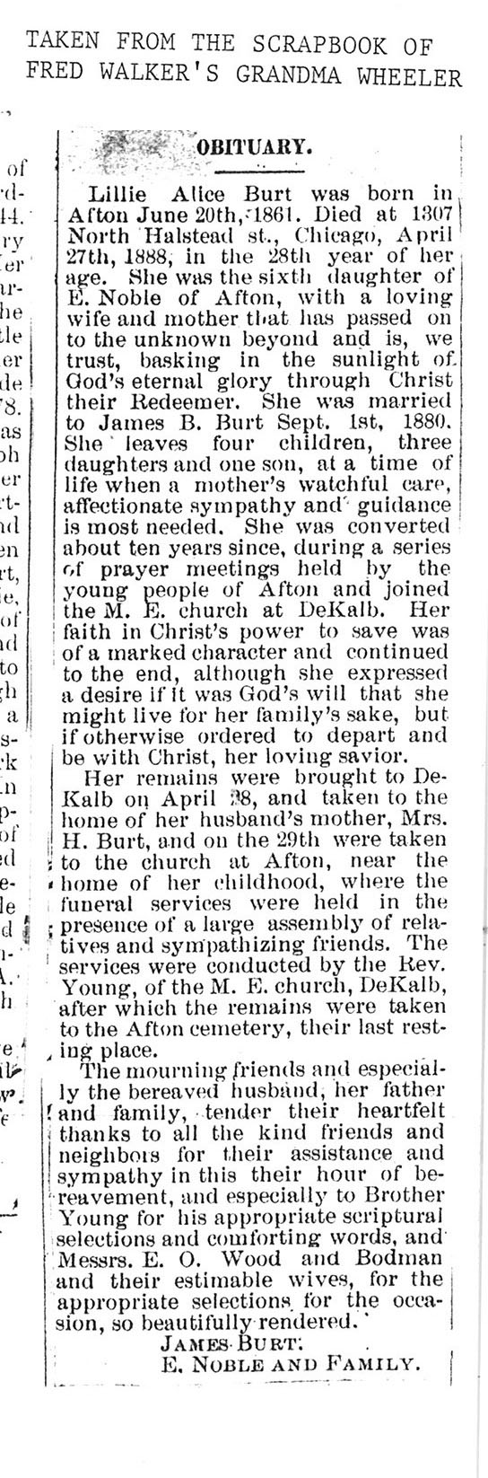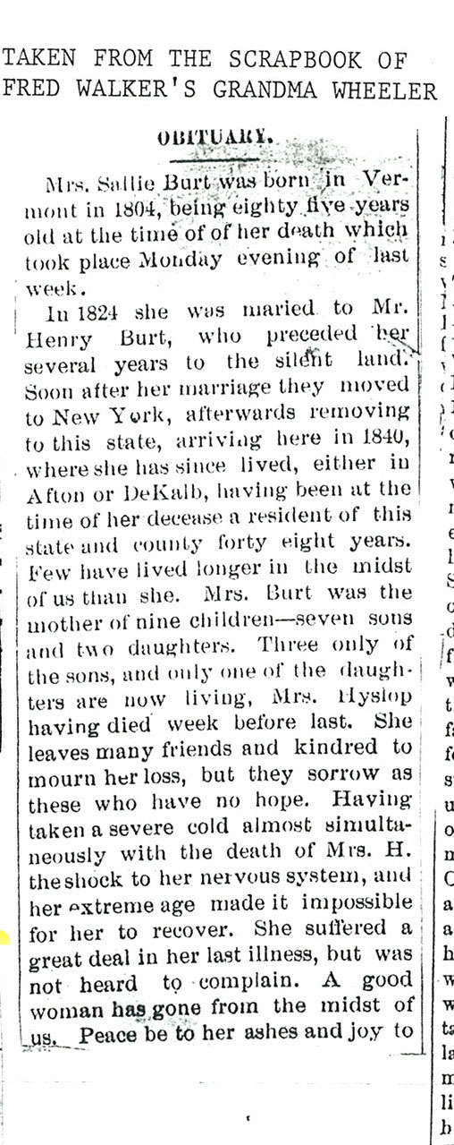 Maiden name - Burt Buried in Kaneville Cemetery, Kaneville, IL