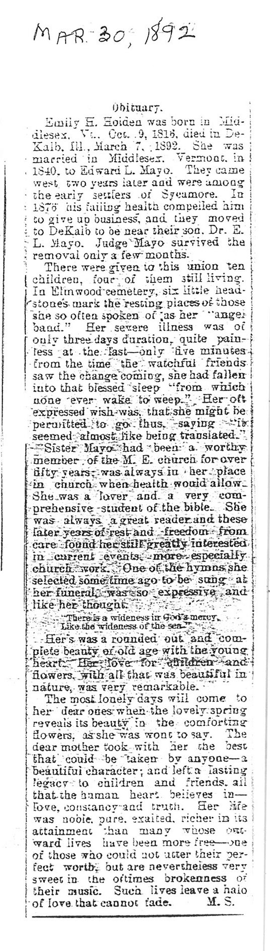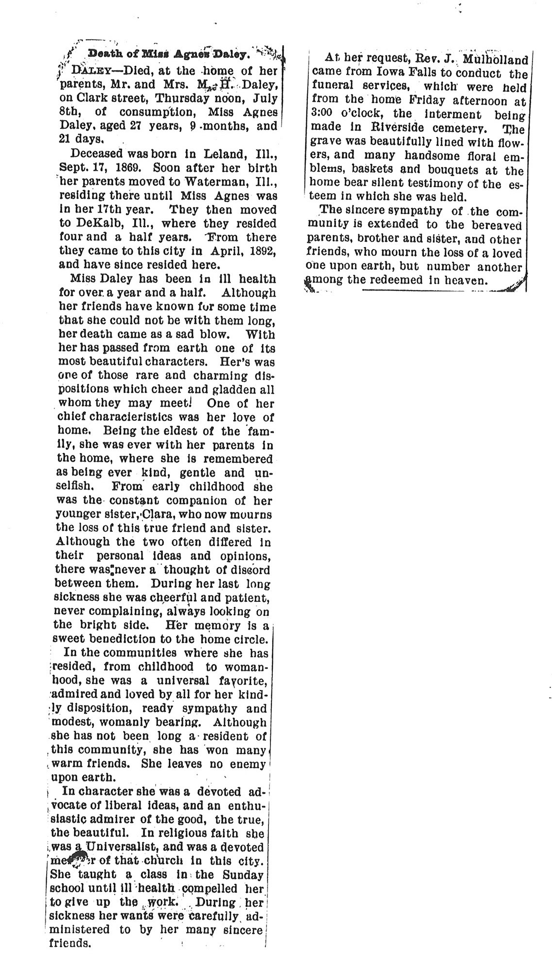 No date of birth Buried in Riverside Cemetery