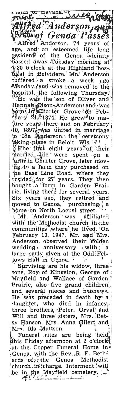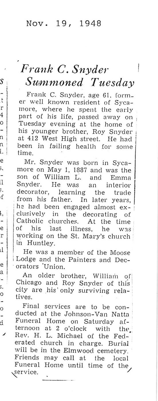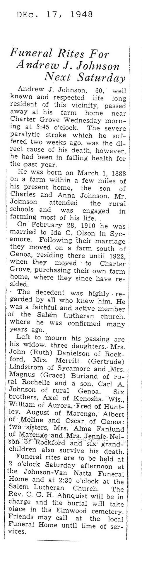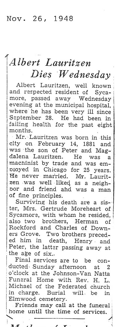 The Obit is hard to read it says he was born on July 7 1876. The obit also says he is 79 years old but the date of death is November 8, 1948 which would make him 72