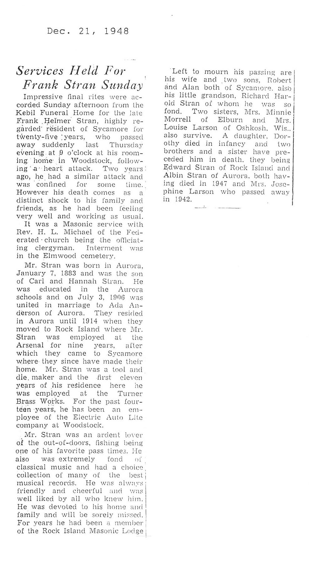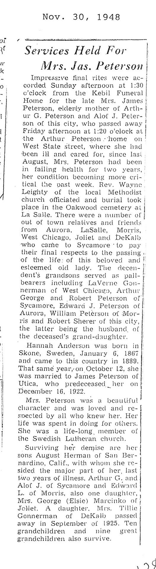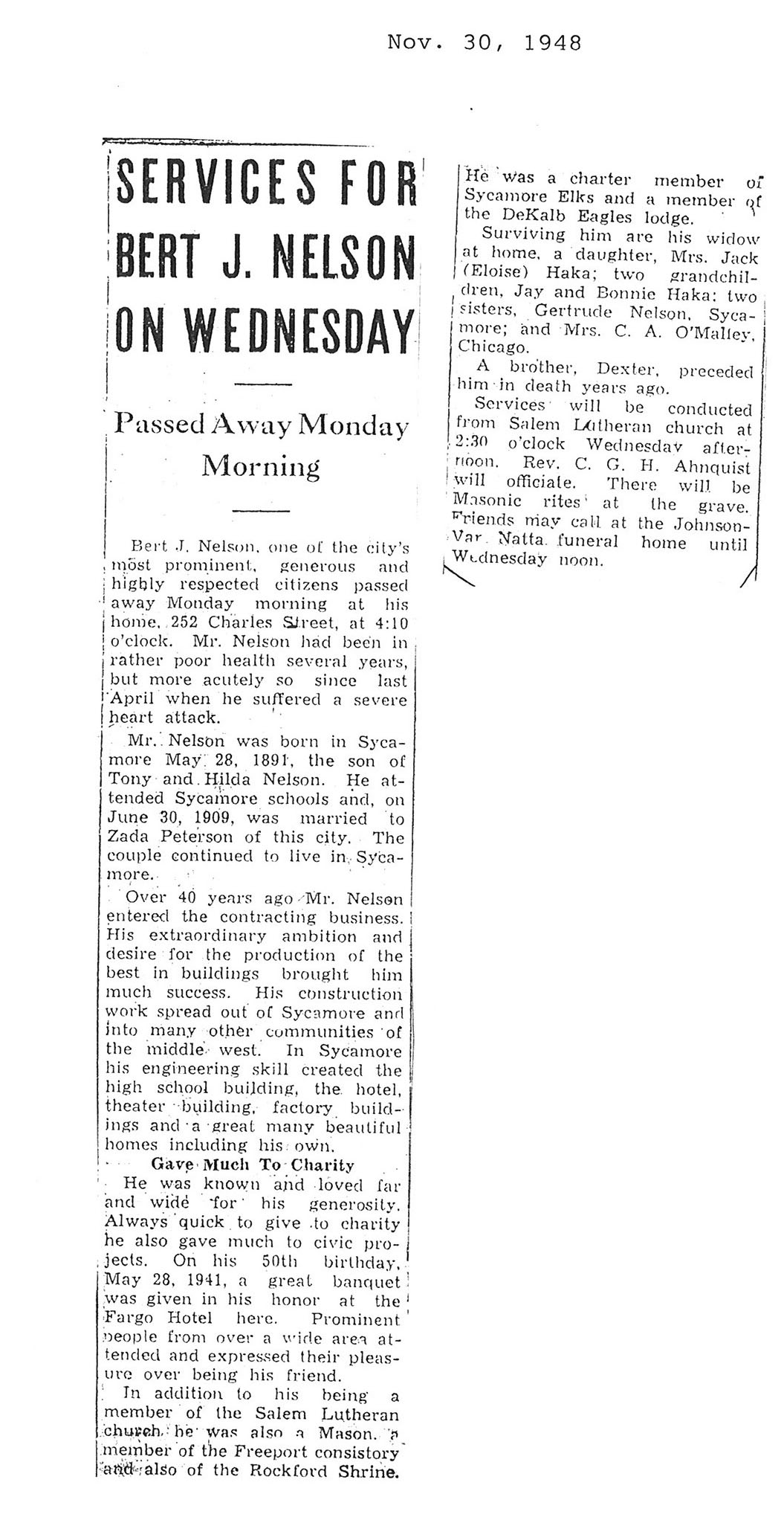 The Obit is hard to read it says he was born on July 7 1876. The obit also says he is 79 years old but the date of death is November 8, 1948 which would make him 72