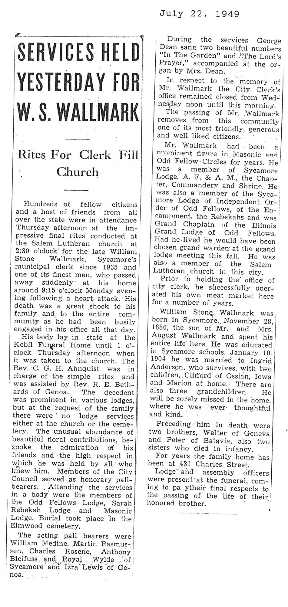 DOB June 11, 1879 in Sweden