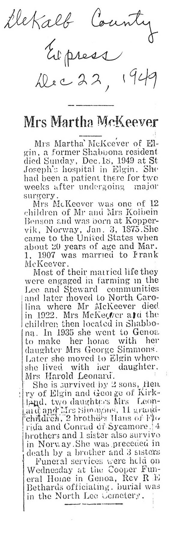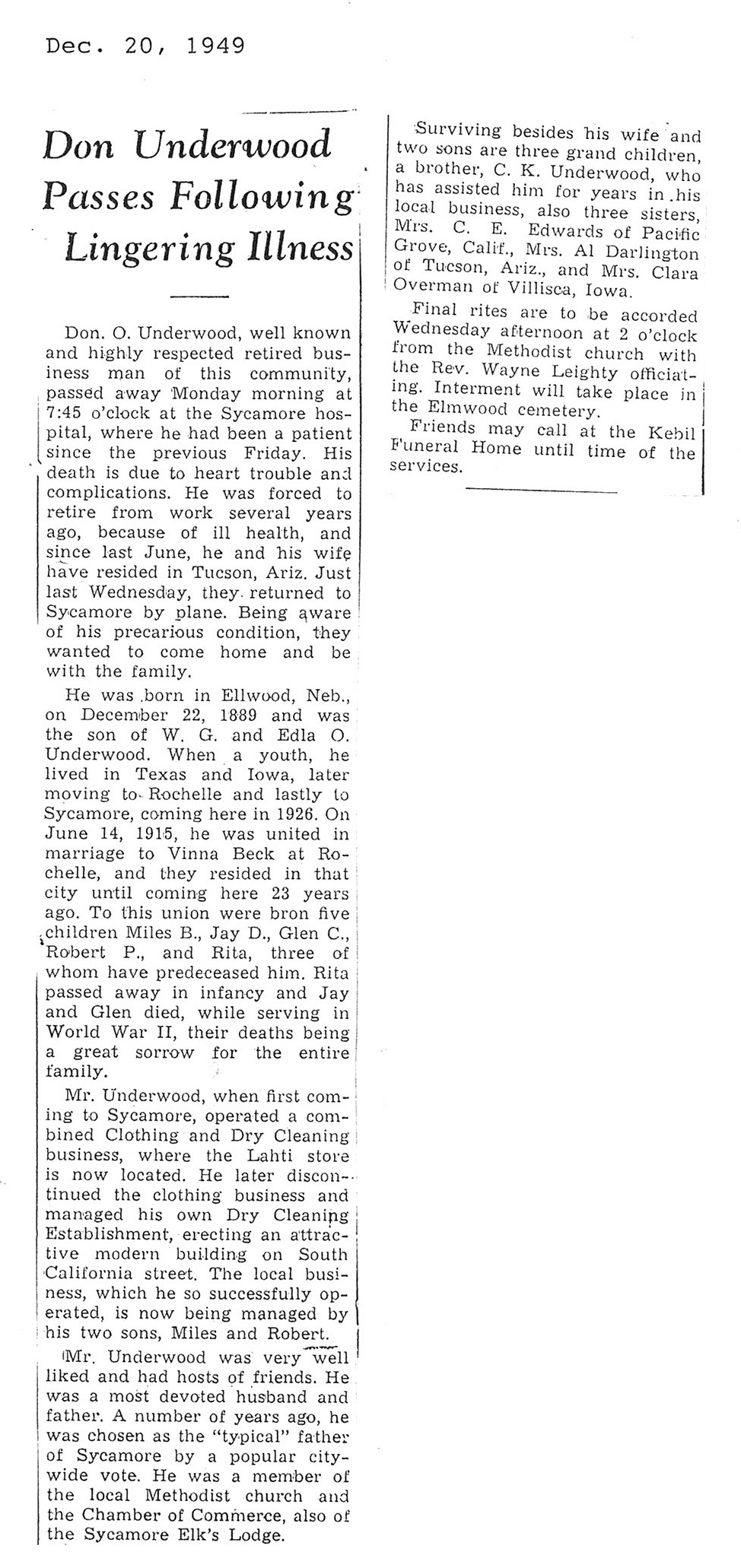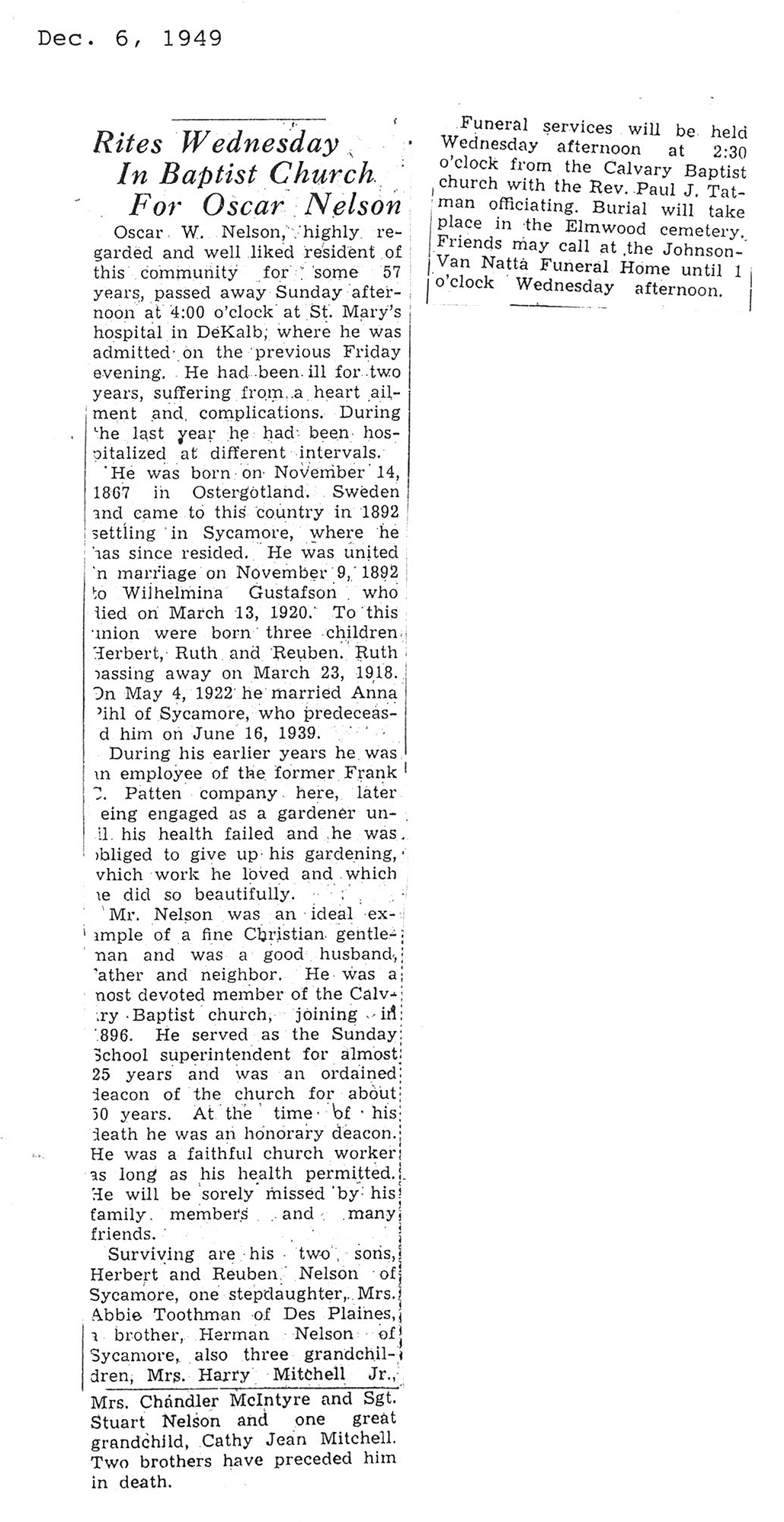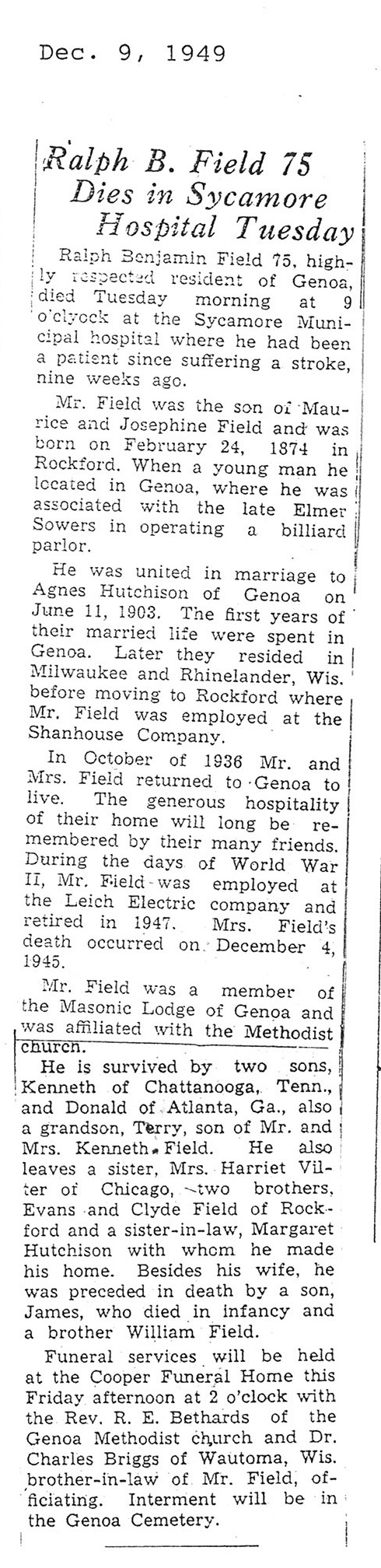 Deceased Dec. 7, 1949