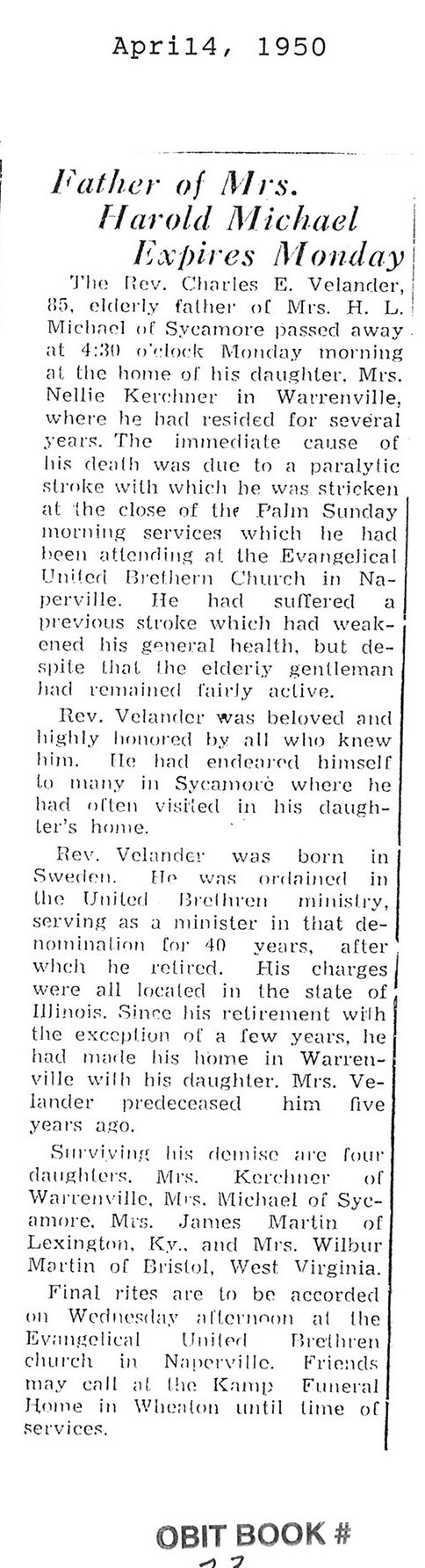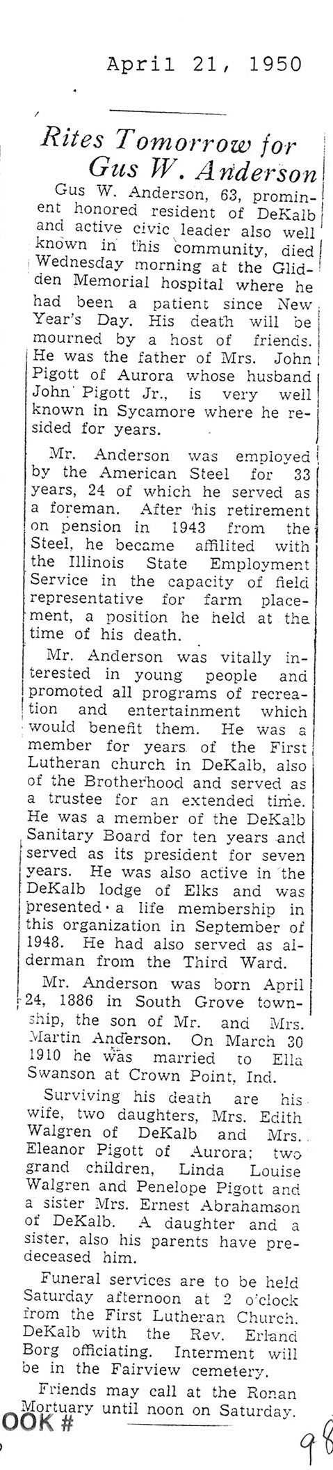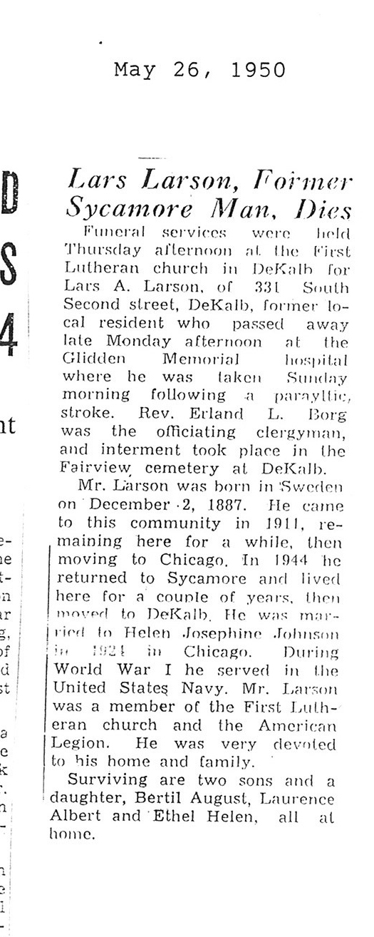 DOB December 2,1887 in Sweden