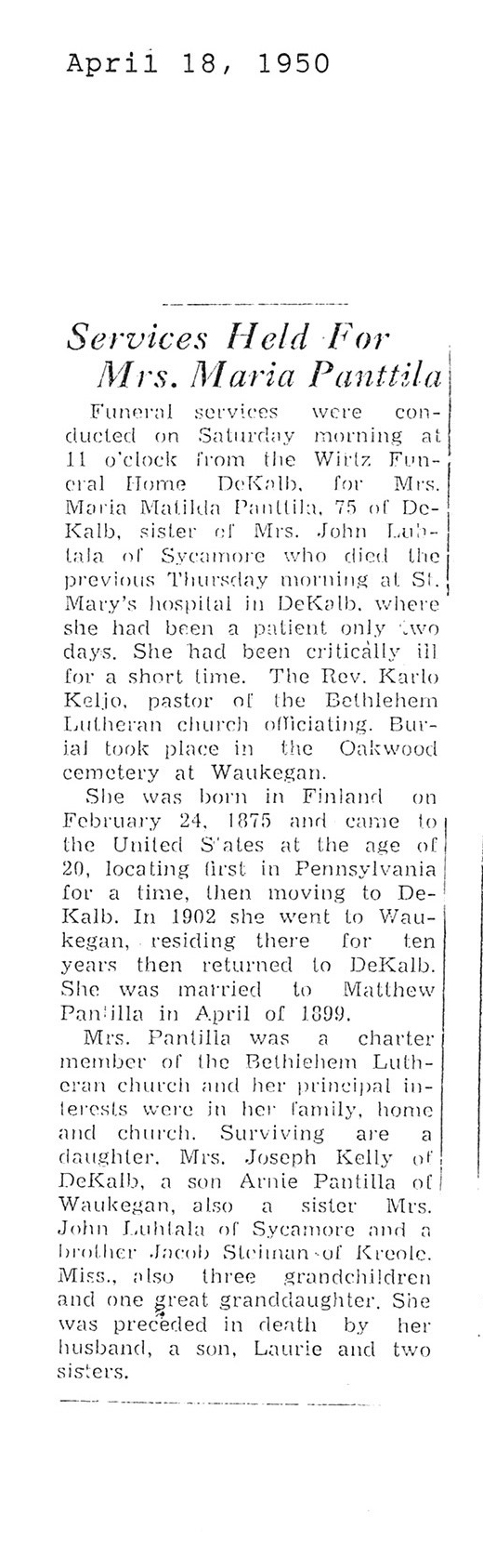 DOB February 24, 1875 in Finland